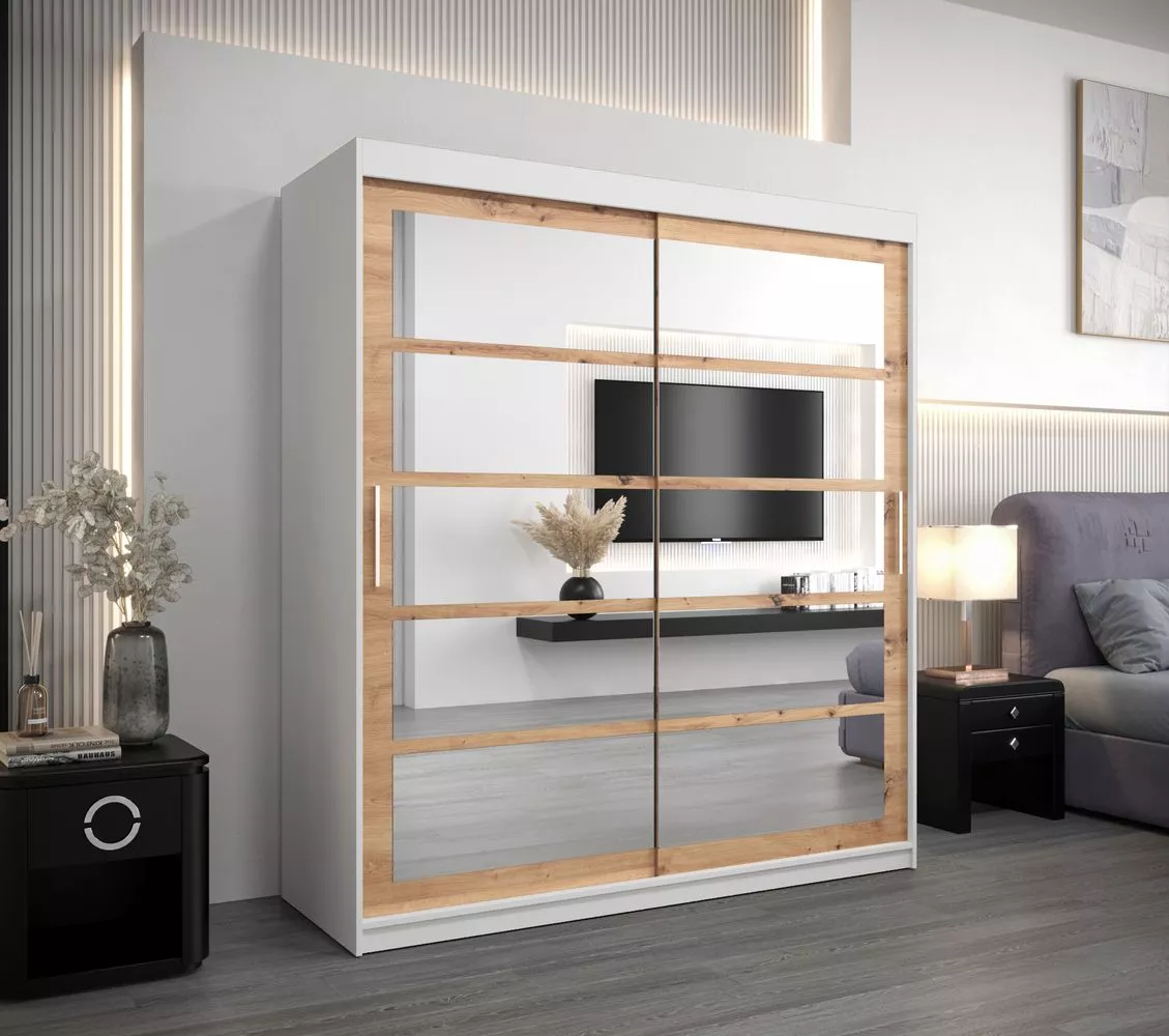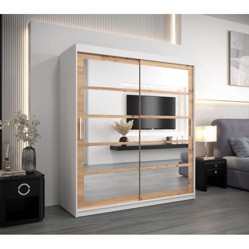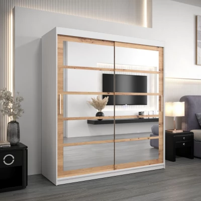 Skříň s posuvnými dveřmi DANIELA - šířka 180 cm, bílá / dub artisan