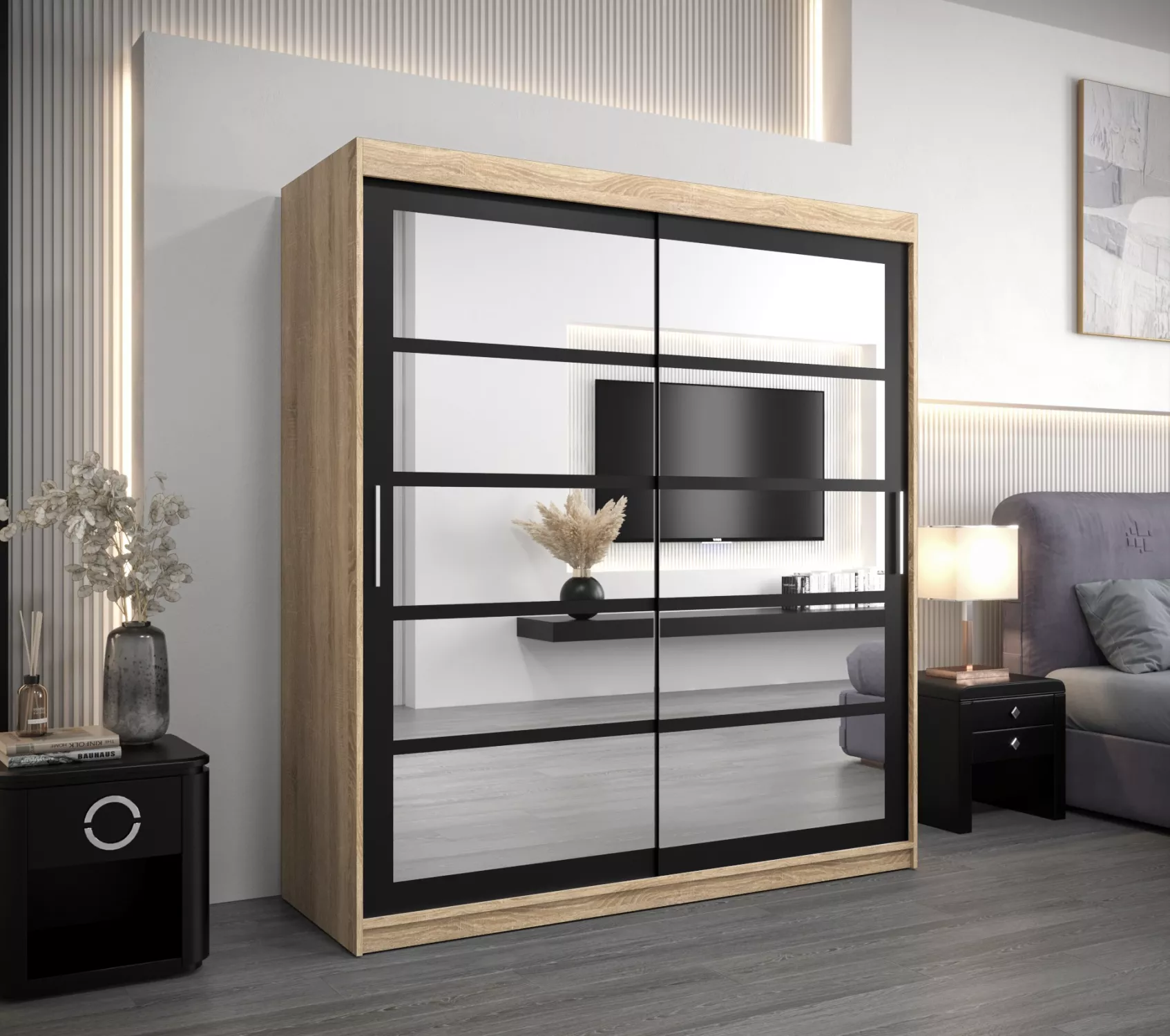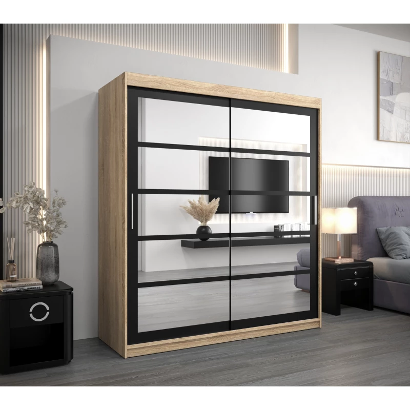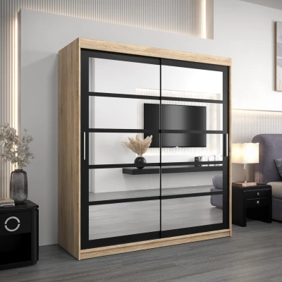 Skříň s posuvnými dveřmi DANIELA - šířka 180 cm, dub sonoma / černá