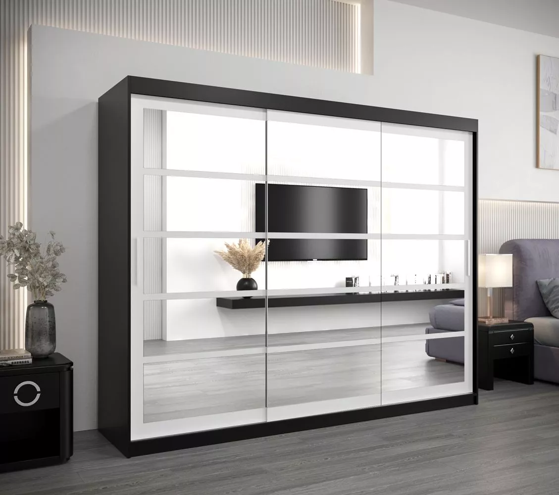 Skříň s posuvnými dveřmi LEONA - šířka 250 cm, černá / bílá