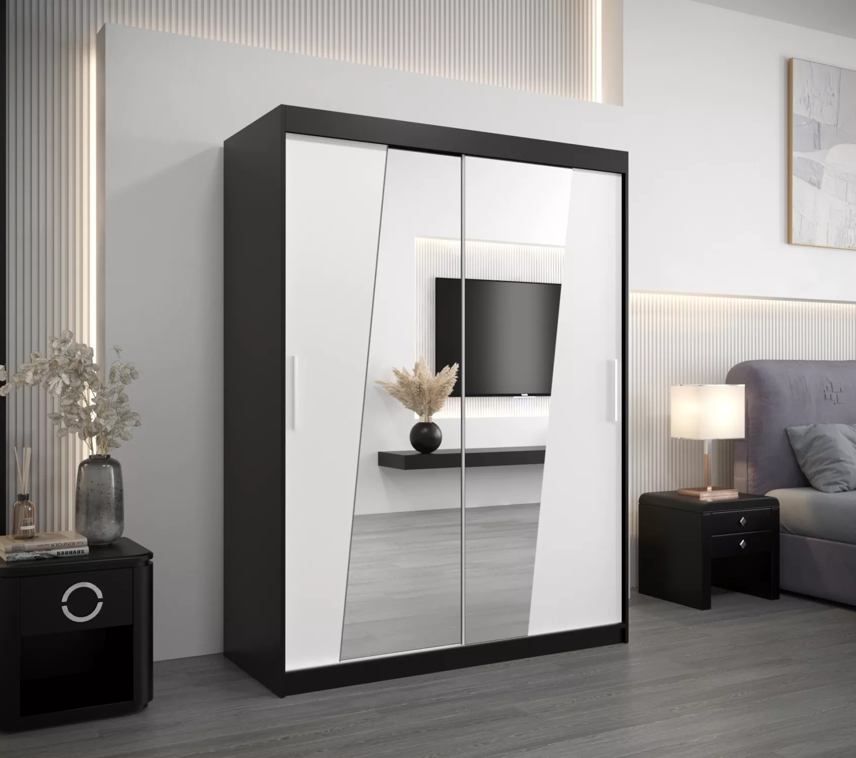 Šatní skříň se zrcadly ELVIRA - šířka 150 cm, černá / bílá