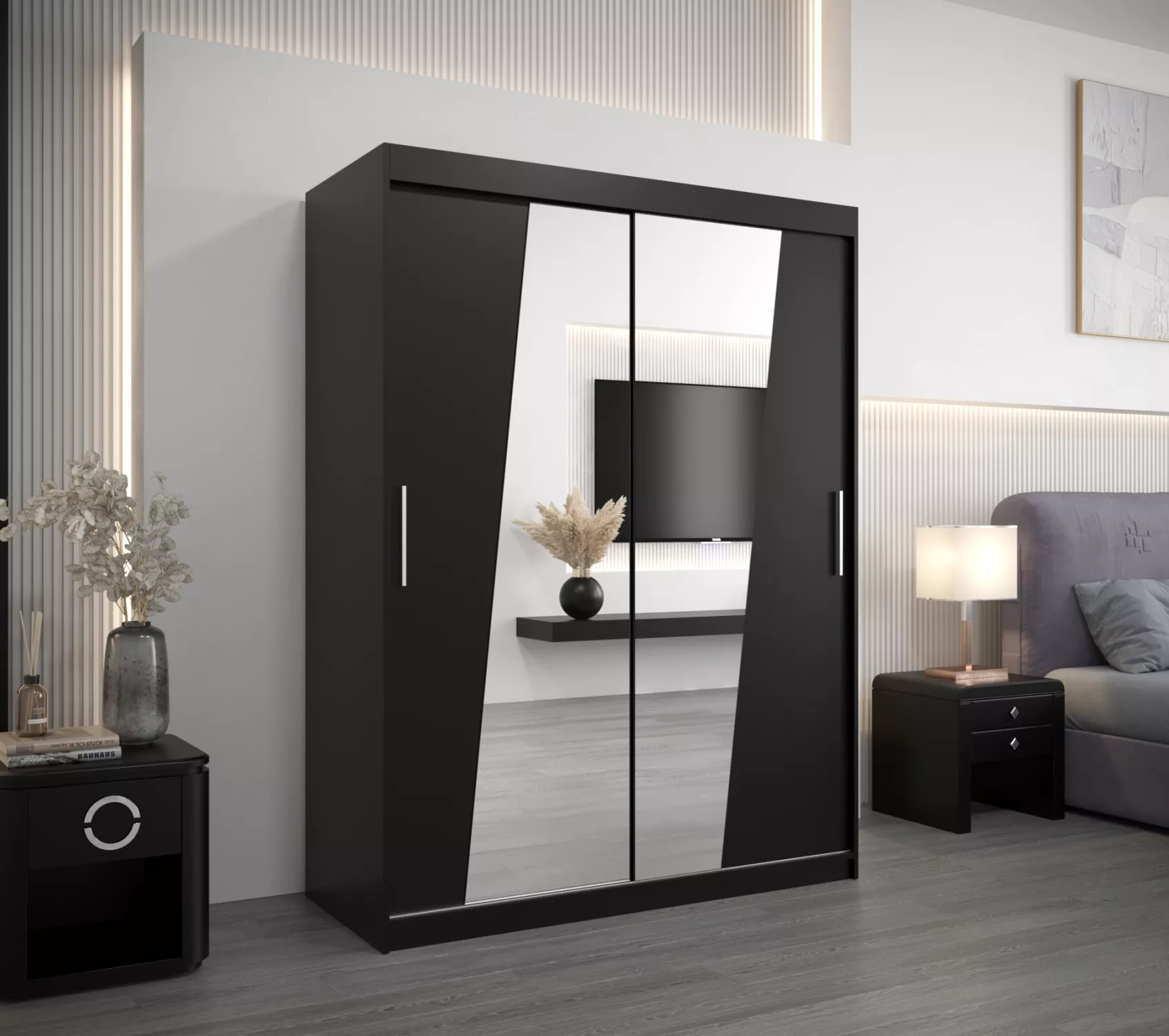 Šatní skříň se zrcadly ELVIRA - šířka 150 cm, černá