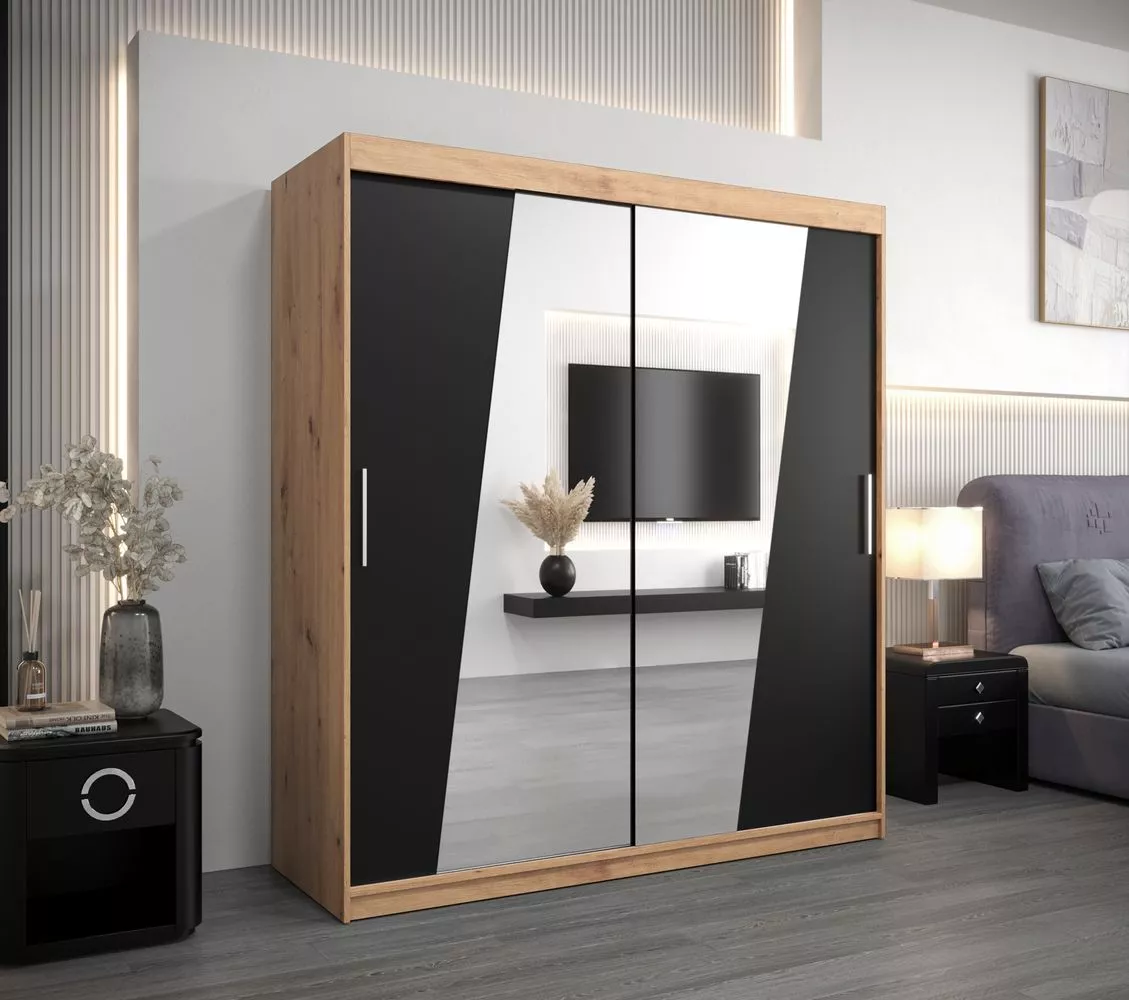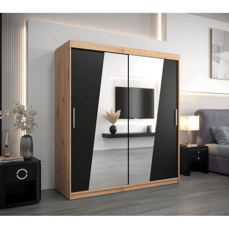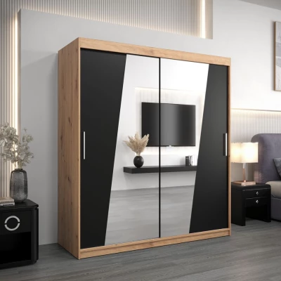 Skříň s posuvnými dveřmi MIRIAM - šířka 180 cm, dub artisan / černá
