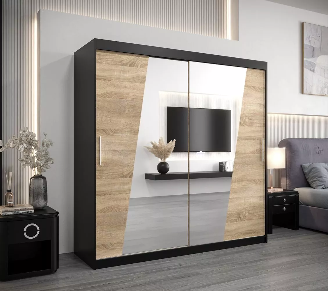 Šatní skříň ESTER - šířka 200 cm, černá / dub sonoma