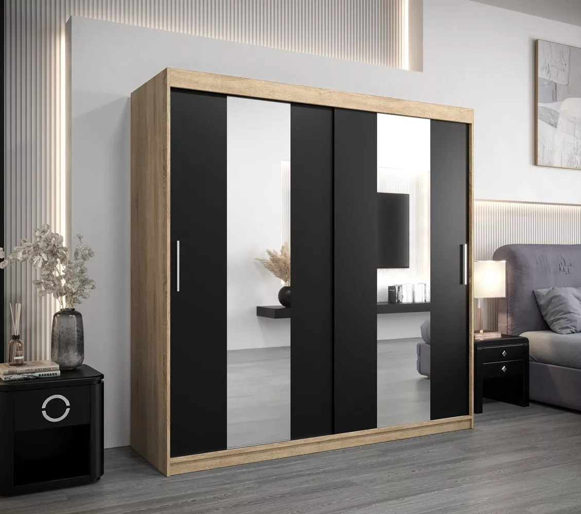 Šatní skříň ALICE - šířka 200 cm, dub sonoma / černá