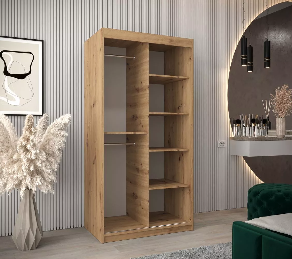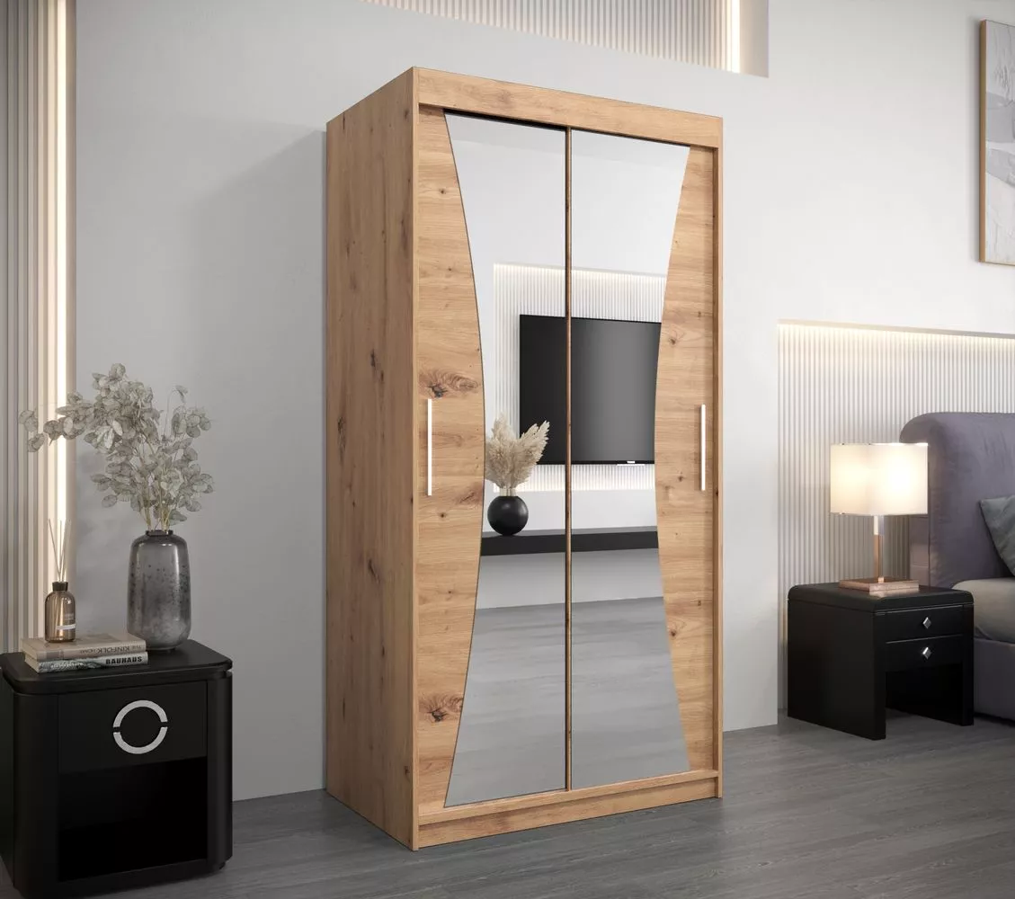Šatní skříň se zrcadly SYLVIE - šířka 100 cm, dub artisan