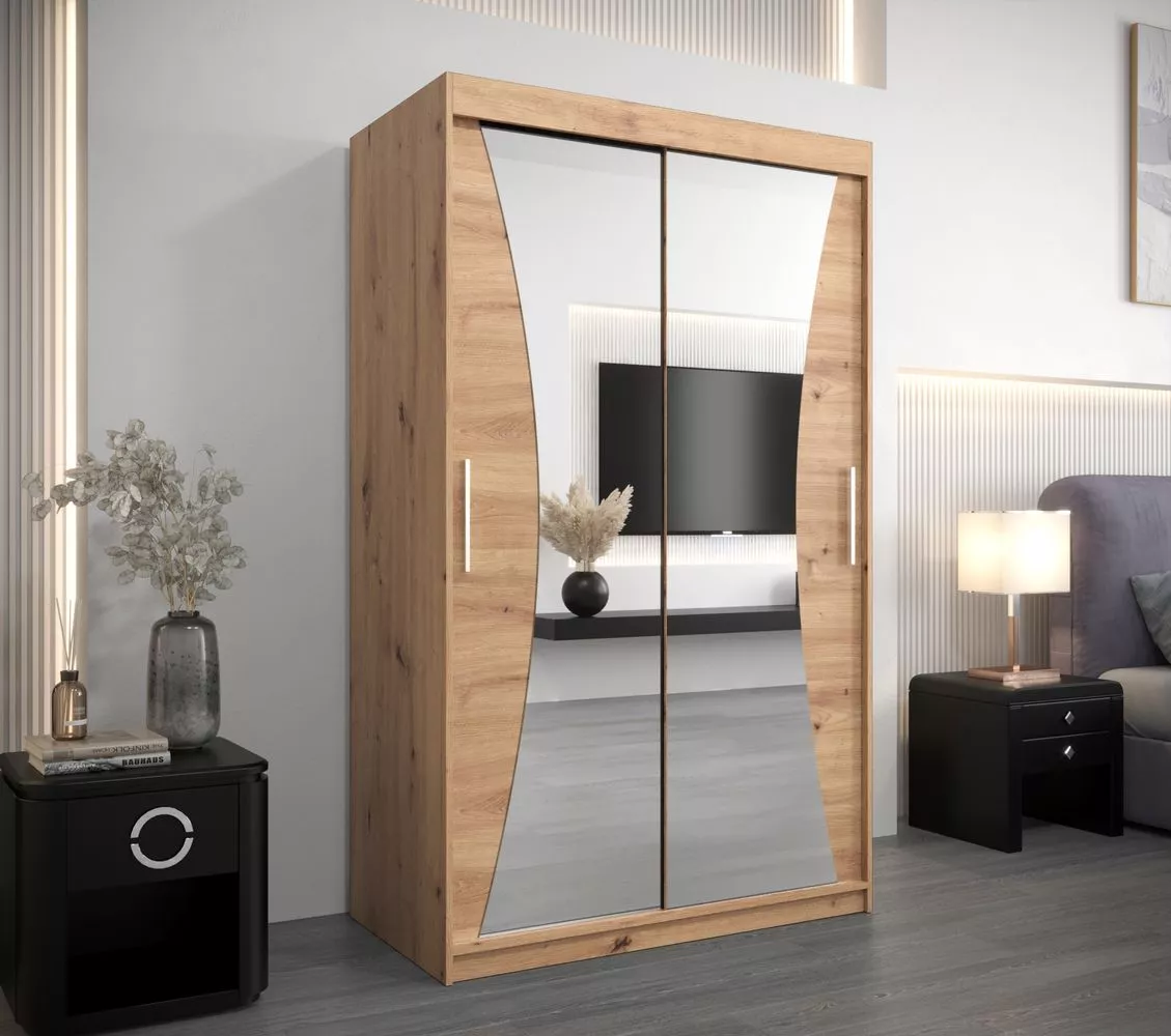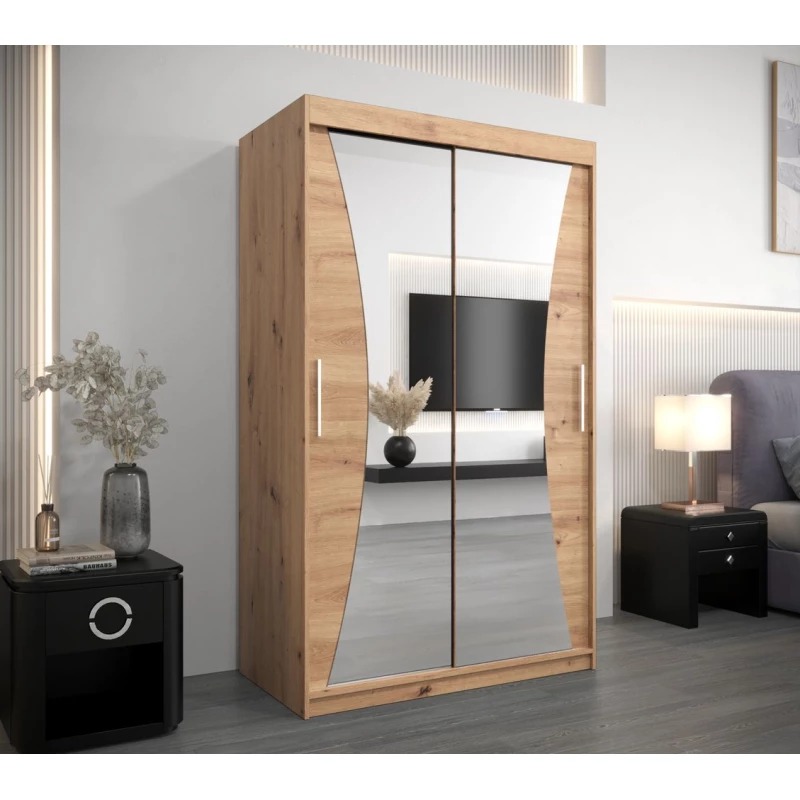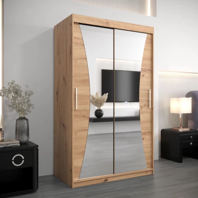Šatní skříň se zrcadly VAIANA - šířka 120 cm, dub artisan