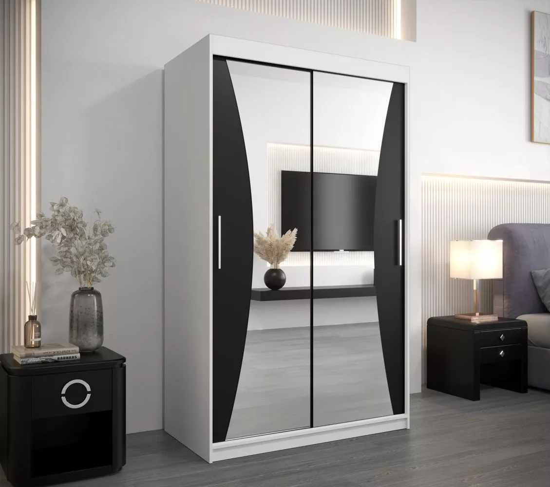 Šatní skříň se zrcadly VAIANA - šířka 120 cm, bílá / černá