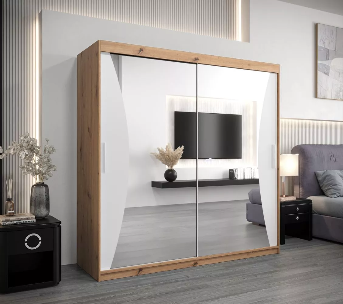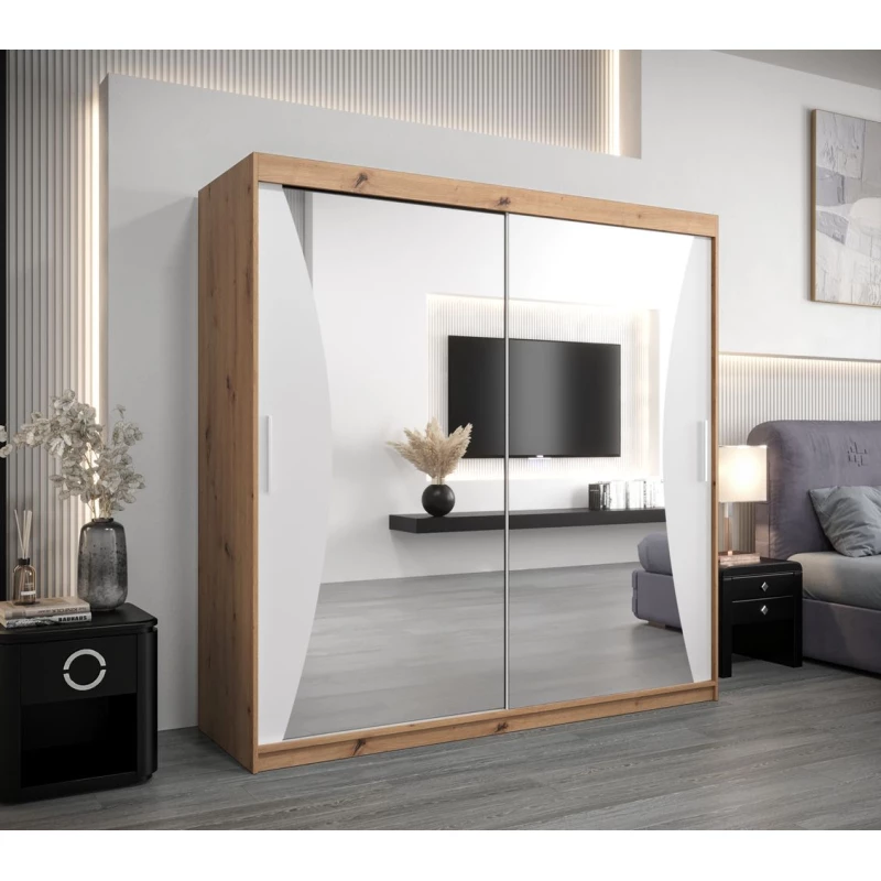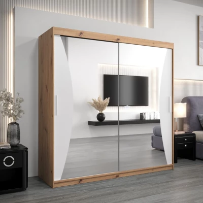 Šatní skříň EMILIE - šířka 200 cm, dub artisan / bílá