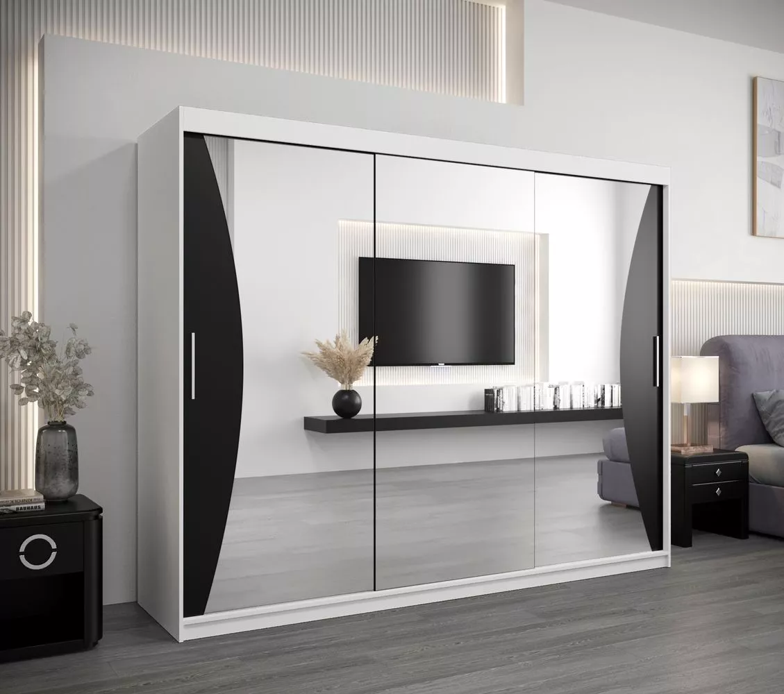 Skříň s posuvnými dveřmi AJA - šířka 250 cm, bílá / černá