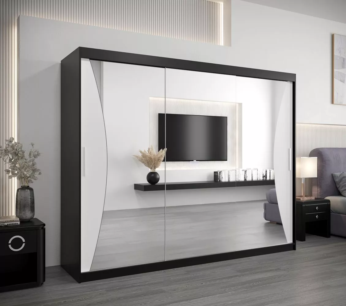 Skříň s posuvnými dveřmi AJA - šířka 250 cm, černá / bílá