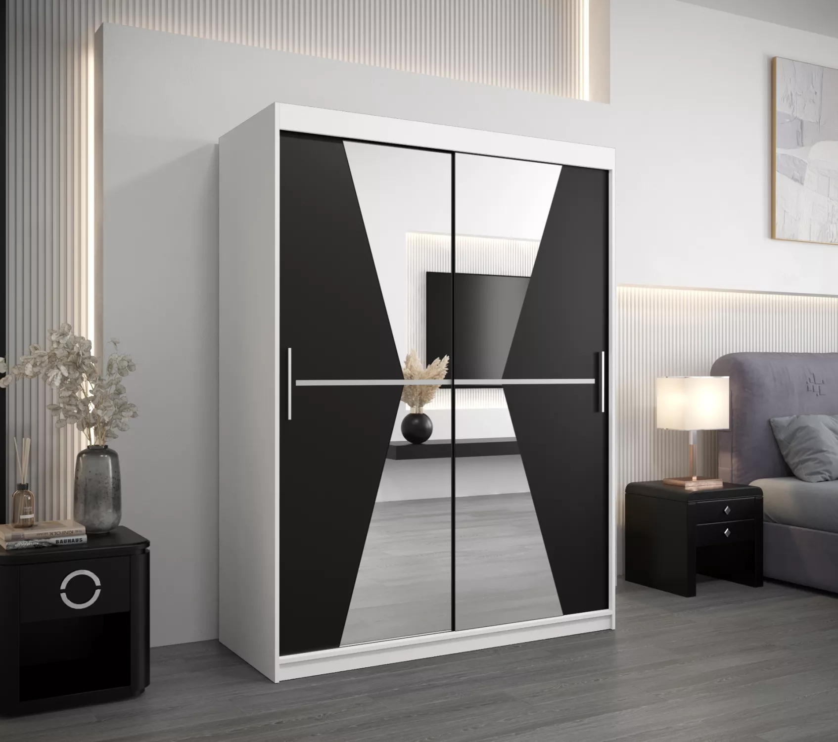 Šatní skříň se zrcadly MILANA - šířka 150 cm, bílá / černá