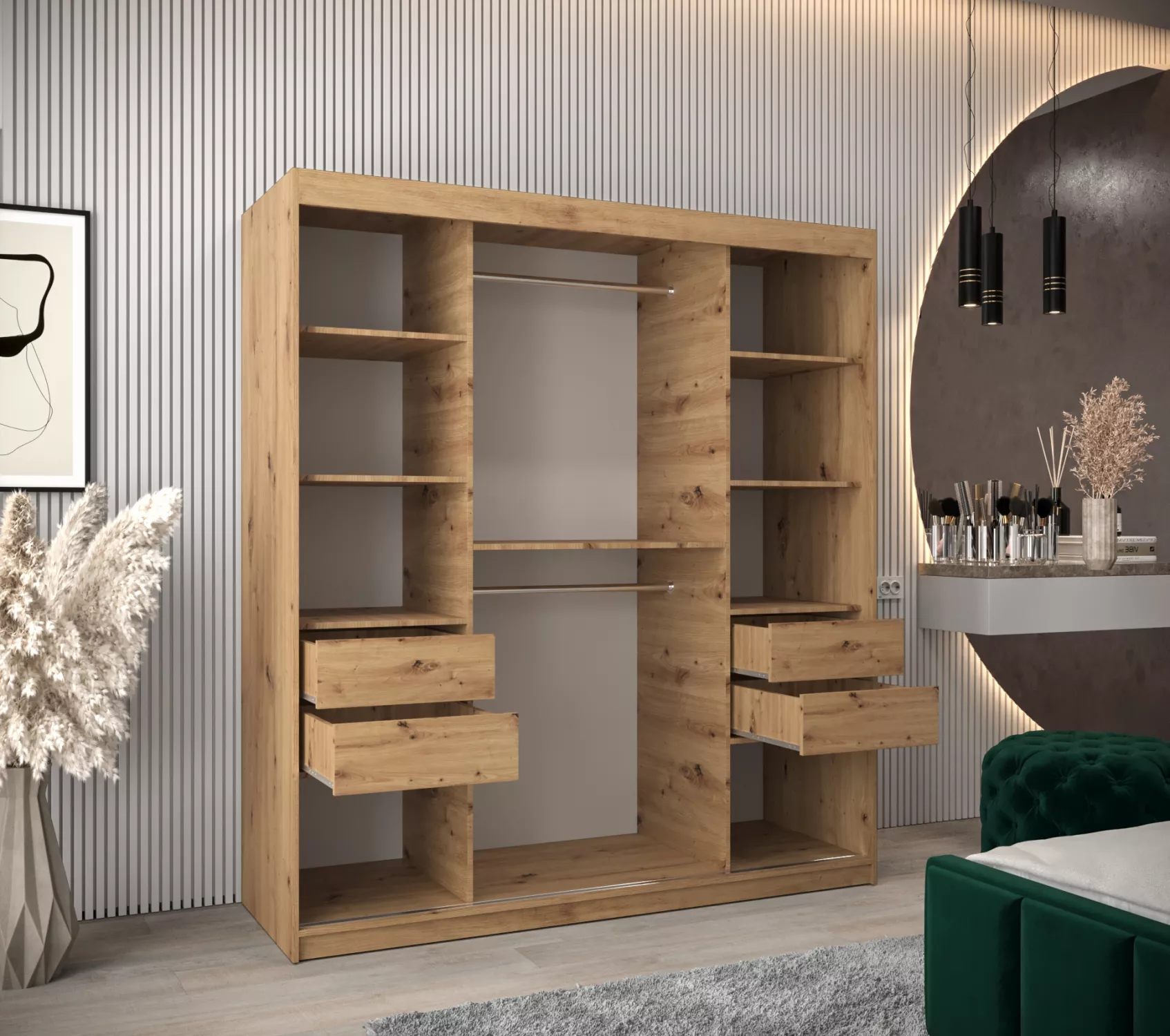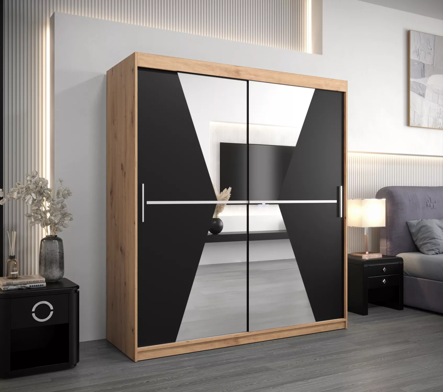 Skříň s posuvnými dveřmi MILANA - šířka 180 cm, dub artisan / černá