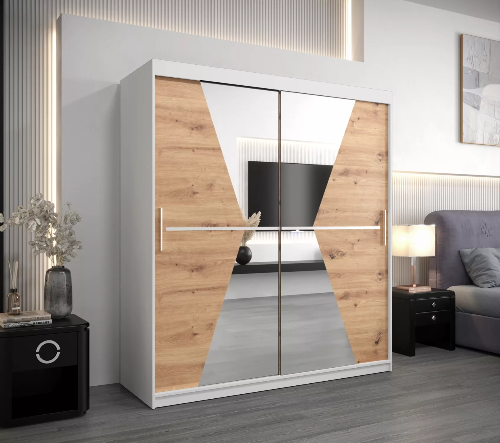 Skříň s posuvnými dveřmi MILANA - šířka 180 cm, bílá / dub artisan