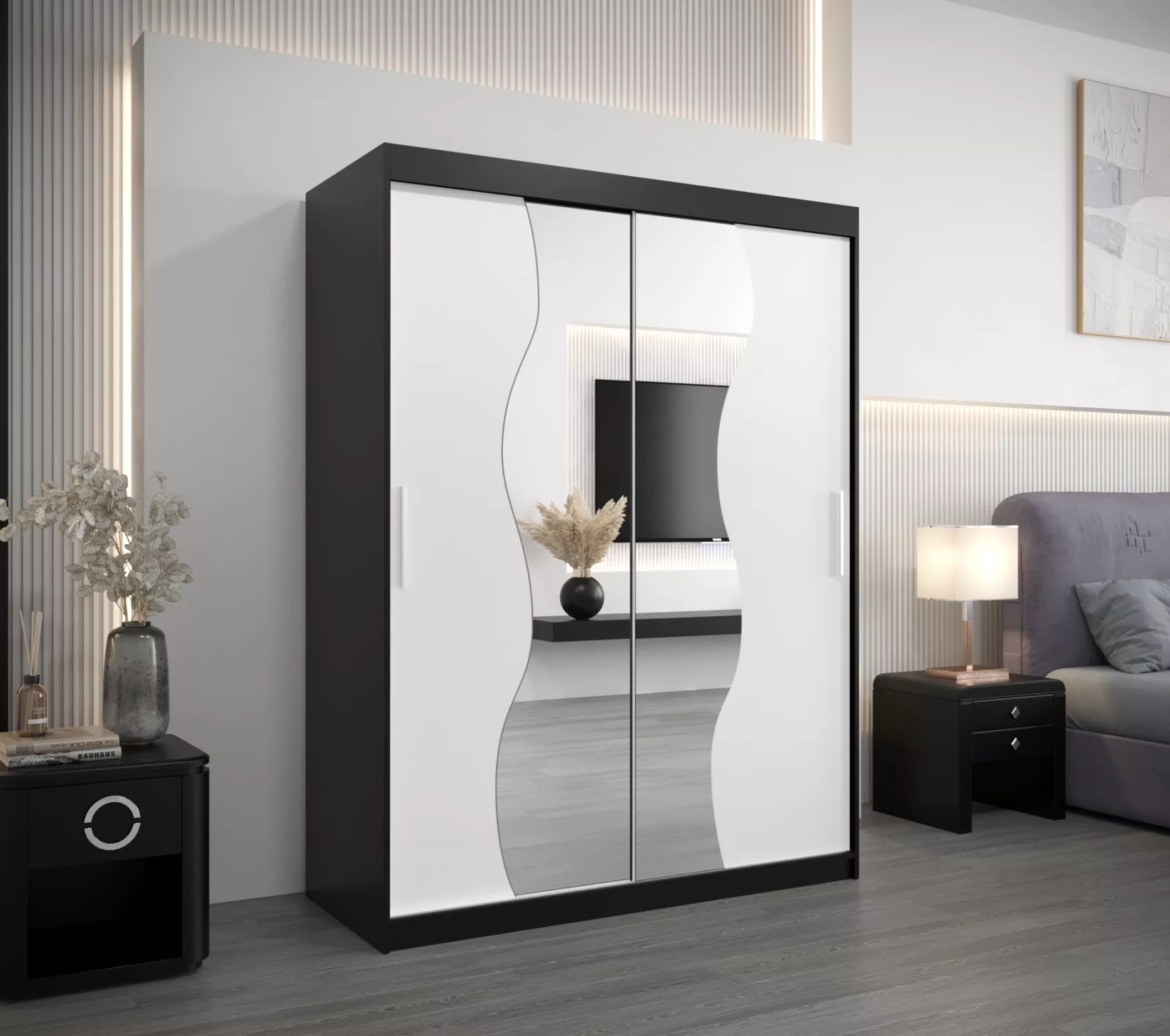 Šatní skříň se zrcadly ULRIKA - šířka 150 cm, černá / bílá