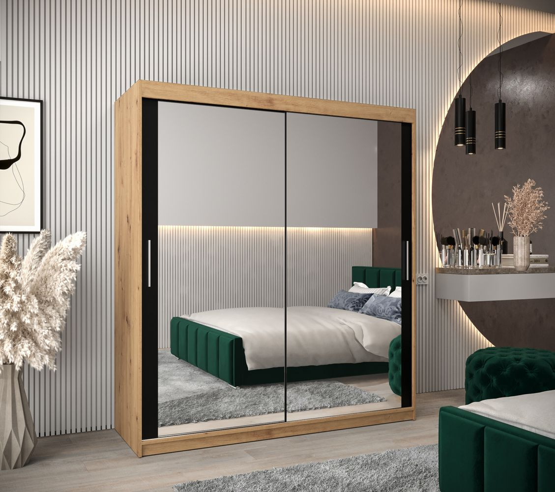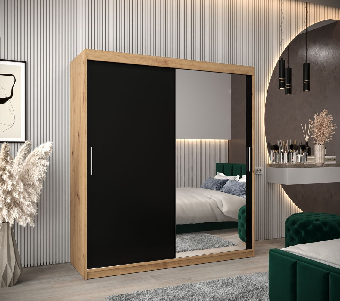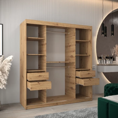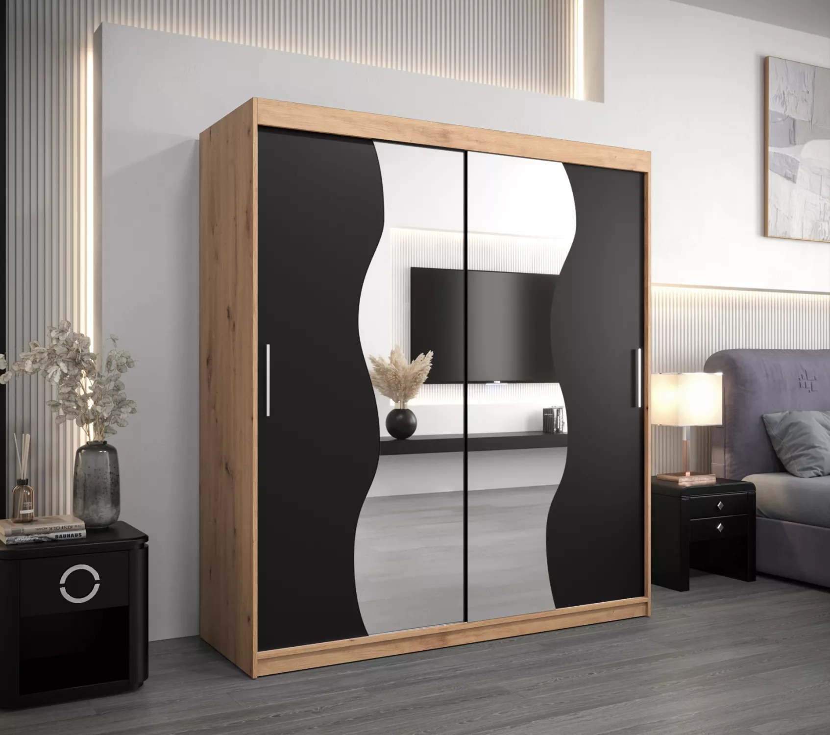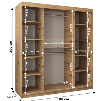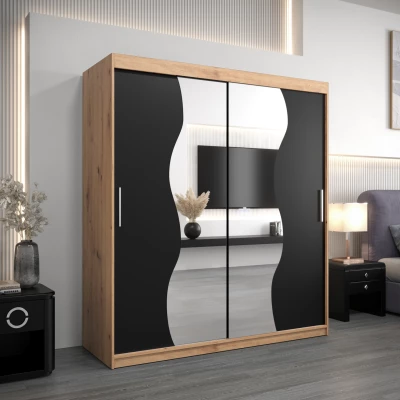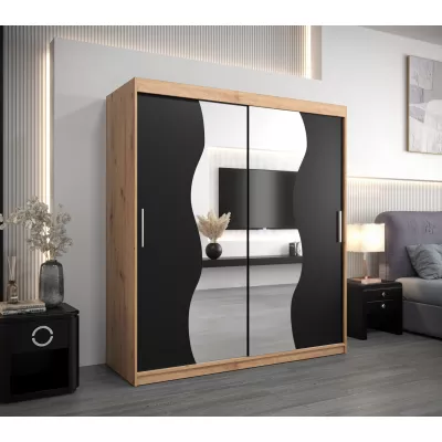 Skříň s posuvnými dveřmi REGINA - šířka 180 cm, dub artisan / černá