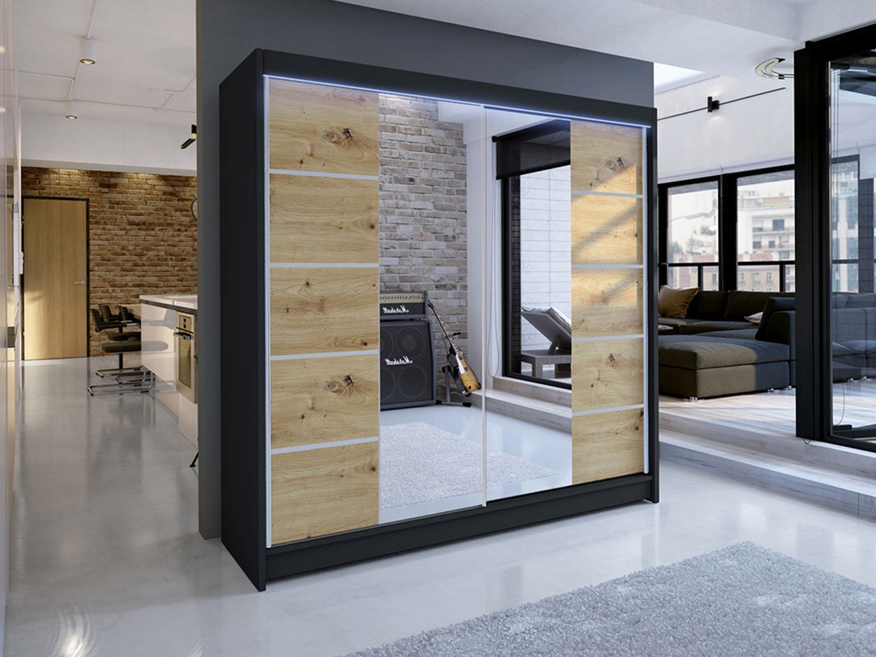 Skříň s posuvnými dveřmi REGINA - šířka 180 cm, bílá / černá
