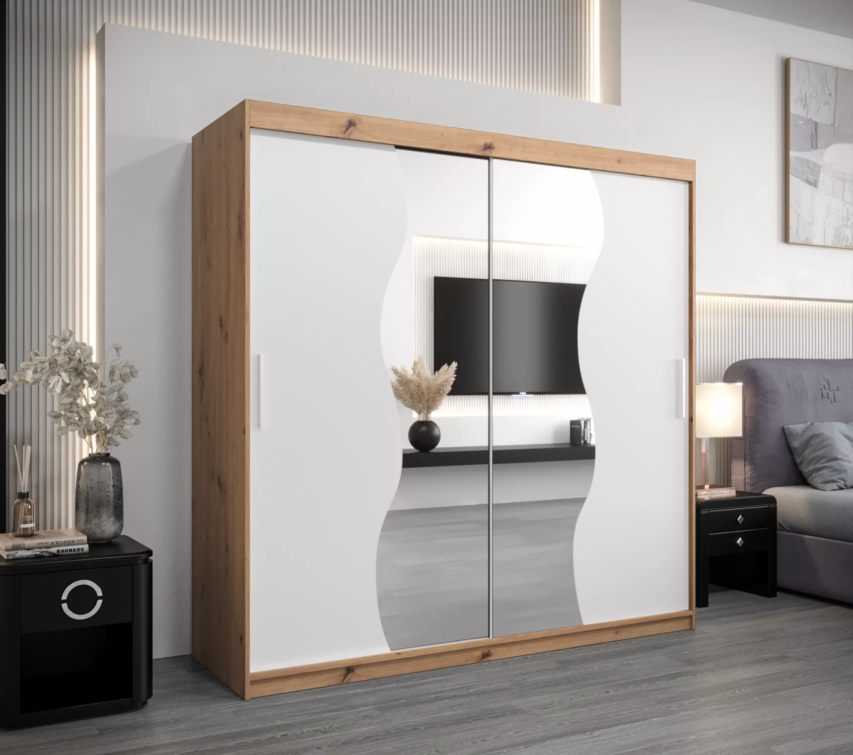 Šatní skříň ROZALIE - šířka 200 cm, dub artisan / bílá