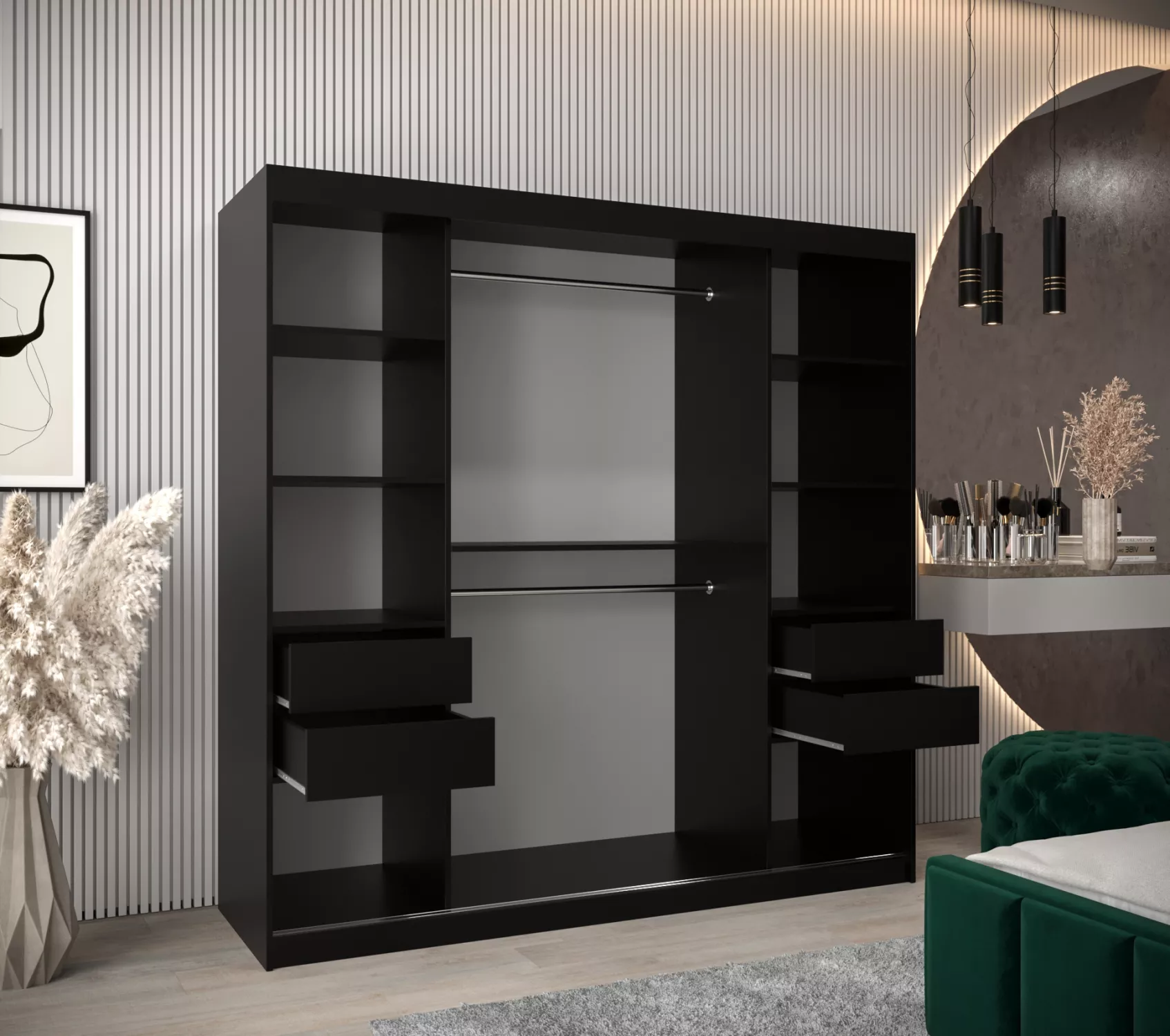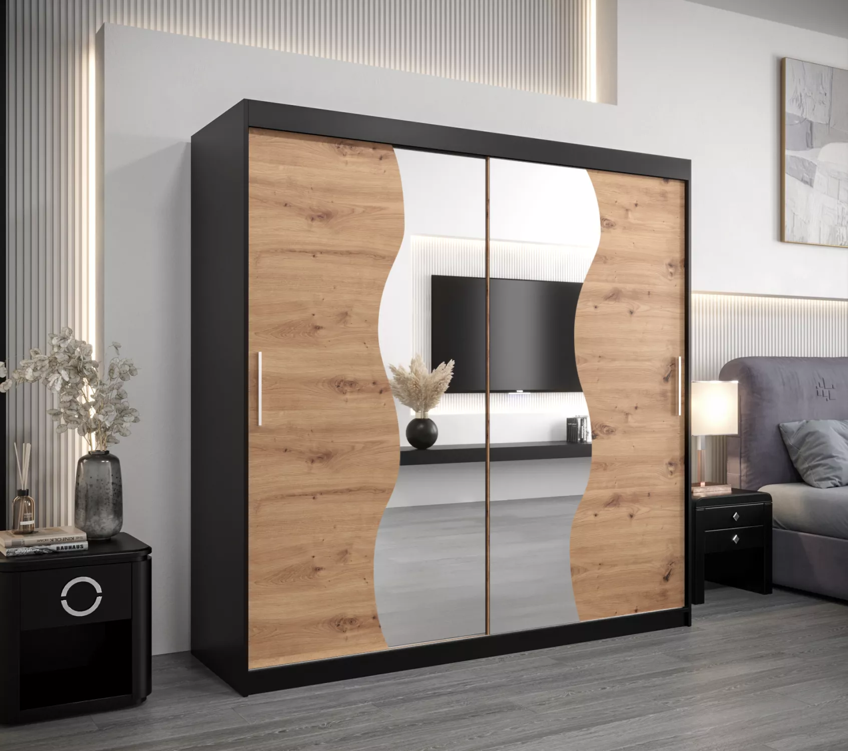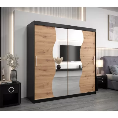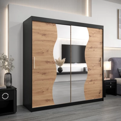 Šatní skříň ROZALIE - šířka 200 cm, černá / dub artisan