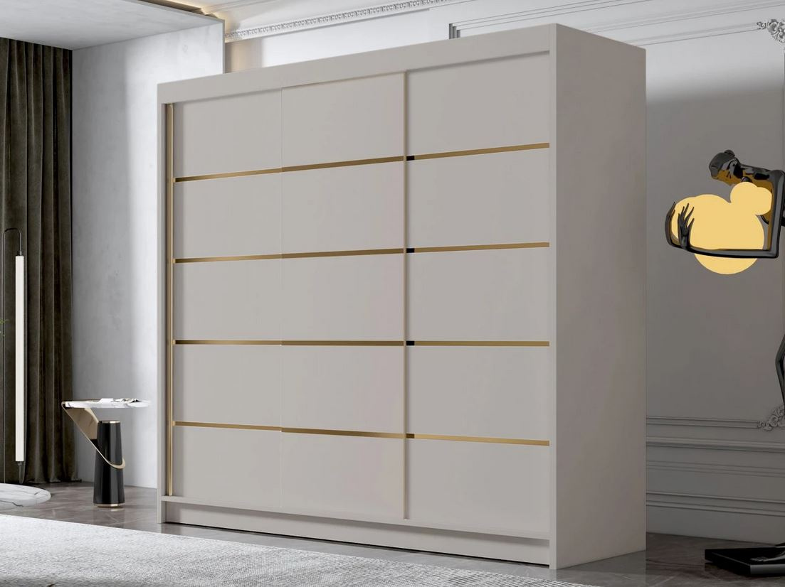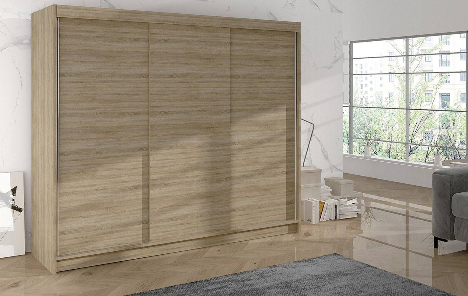 Skříň DITA v moderním stylu se hodí do jakéhokoliv interiéru. Díky jednoduchému vzhledu bude vaše domácnost působit vzdušně a prosvětleně. Díky posuvným dveřím je skříň vhodná i pro menší místností. Skříň je vyrobena z LTD dřevěného materiálu, který je nenáročný na údržbu. Povrchová úprava je matná a přední část je doplněna praktickým zrcadlem.