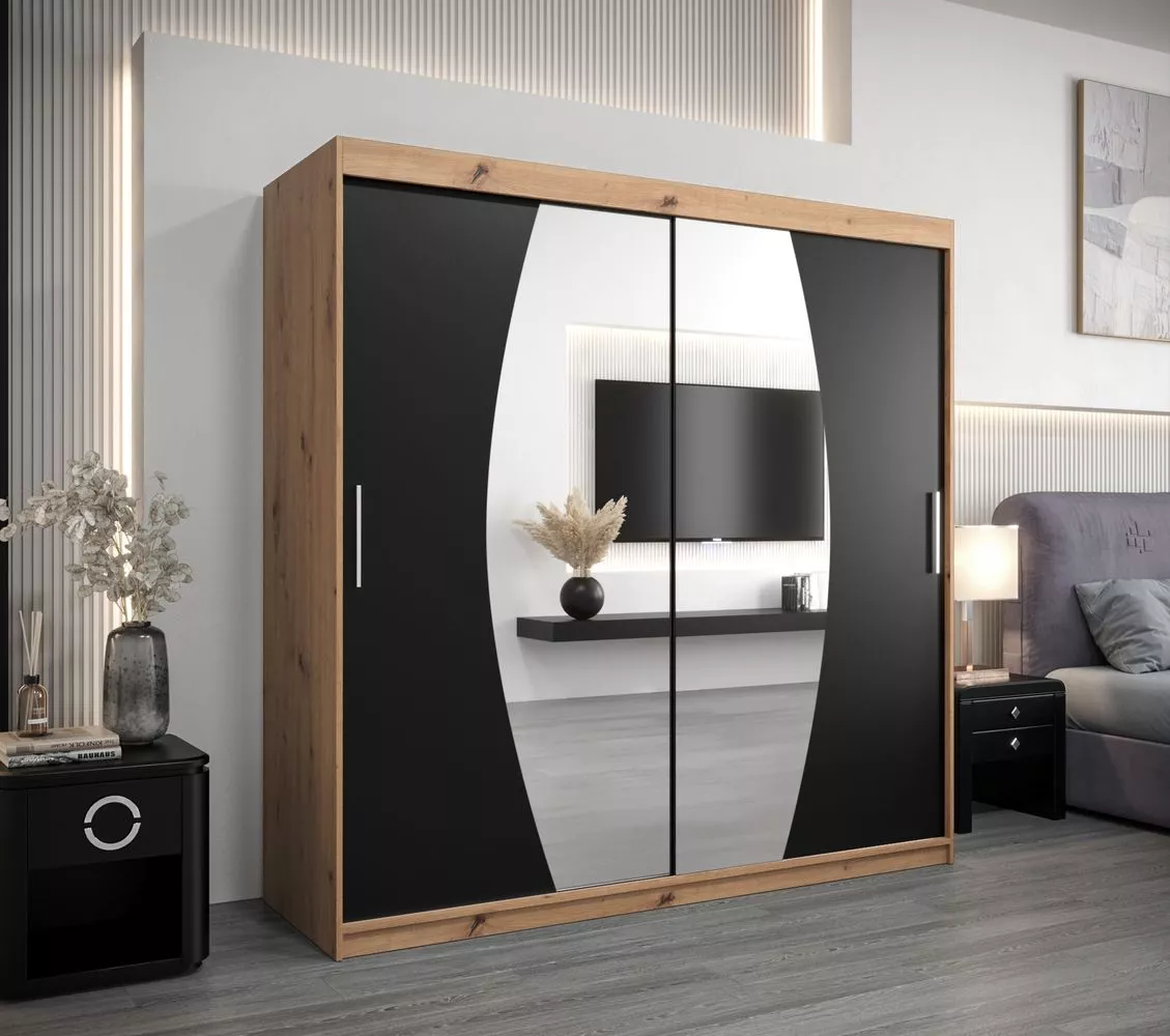 Šatní skříň LILIANA - šířka 200 cm, dub artisan / černá