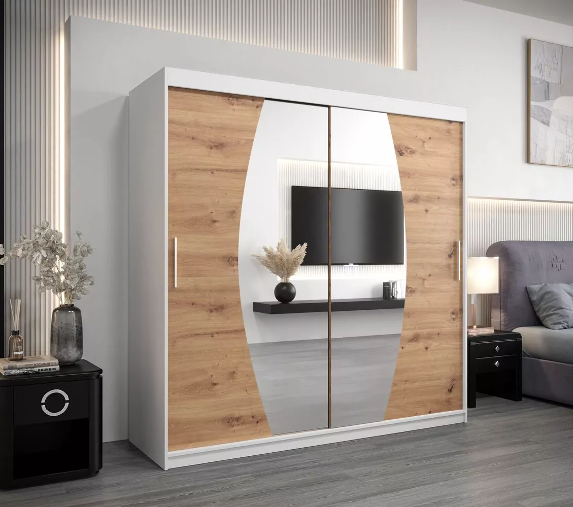 Šatní skříň LILIANA - šířka 200 cm, bílá / dub artisan