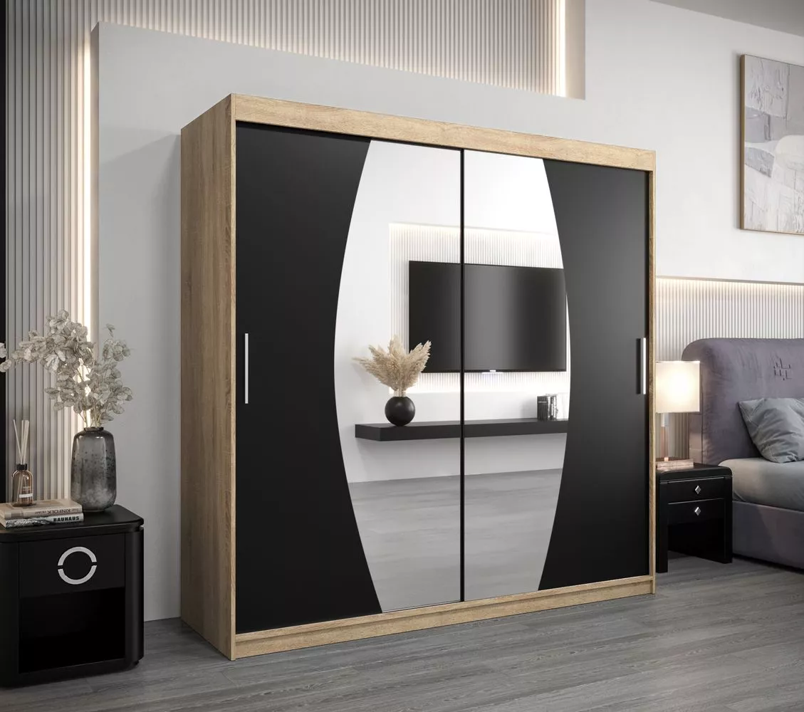 Šatní skříň LILIANA - šířka 200 cm, dub sonoma / černá