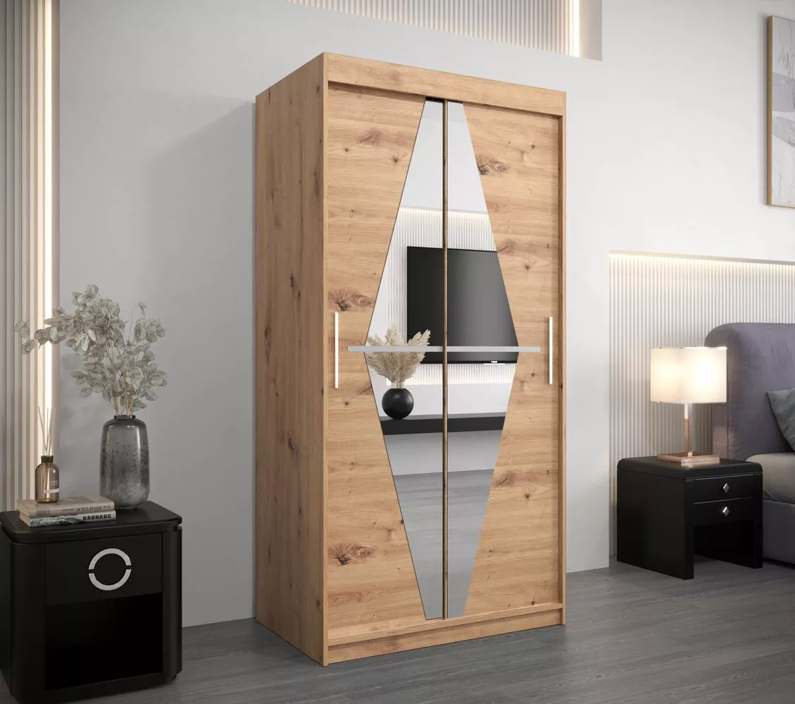 Šatní skříň se zrcadly REBEKA - šířka 100 cm, dub artisan