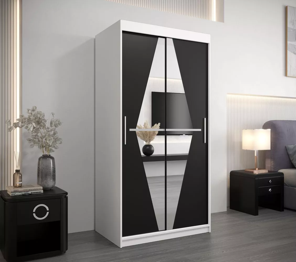 Šatní skříň se zrcadly REBEKA - šířka 100 cm, bílá / černá