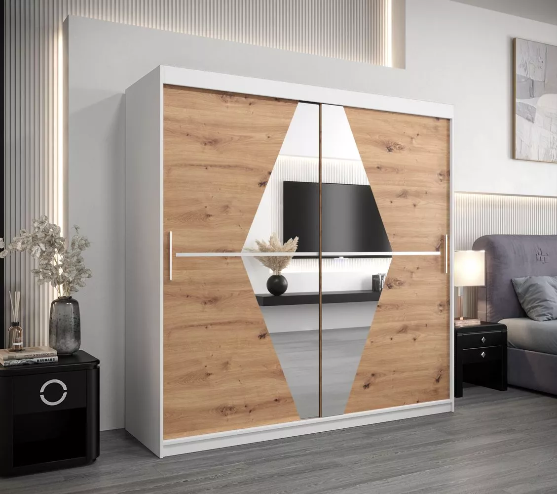 Šatní skříň LAURA - šířka 200 cm, bílá / dub artisan