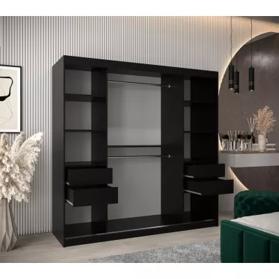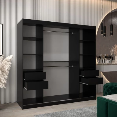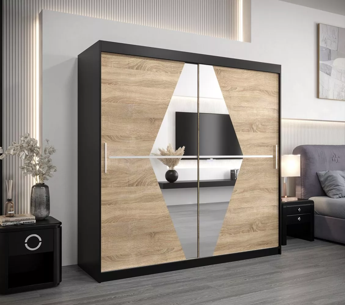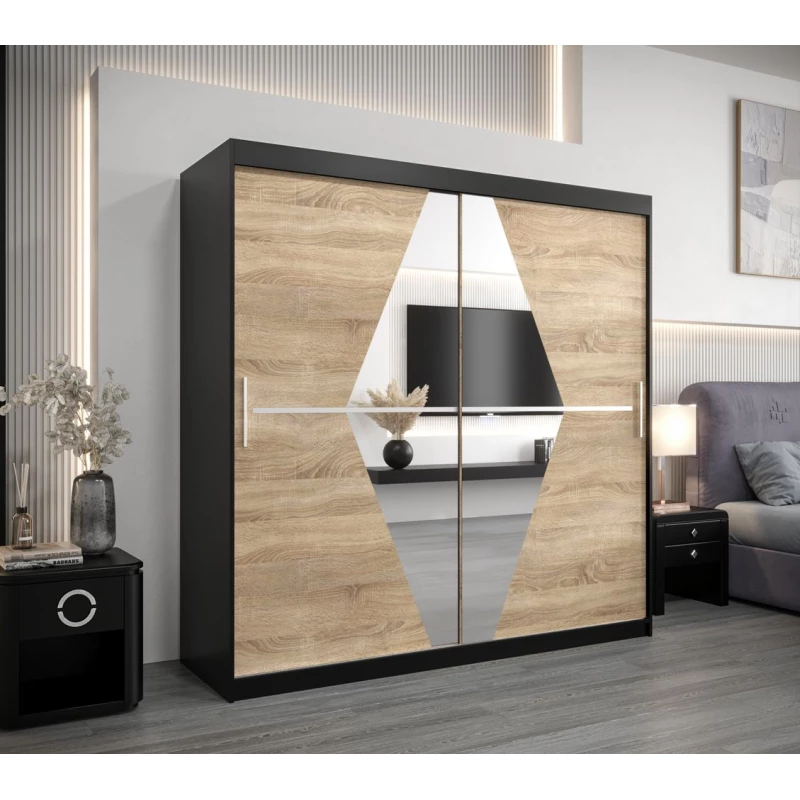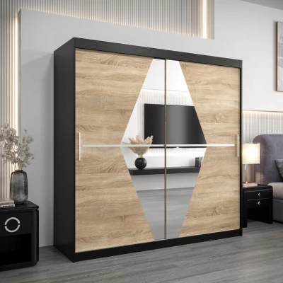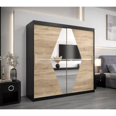 Šatní skříň LAURA - šířka 200 cm, černá / dub sonoma