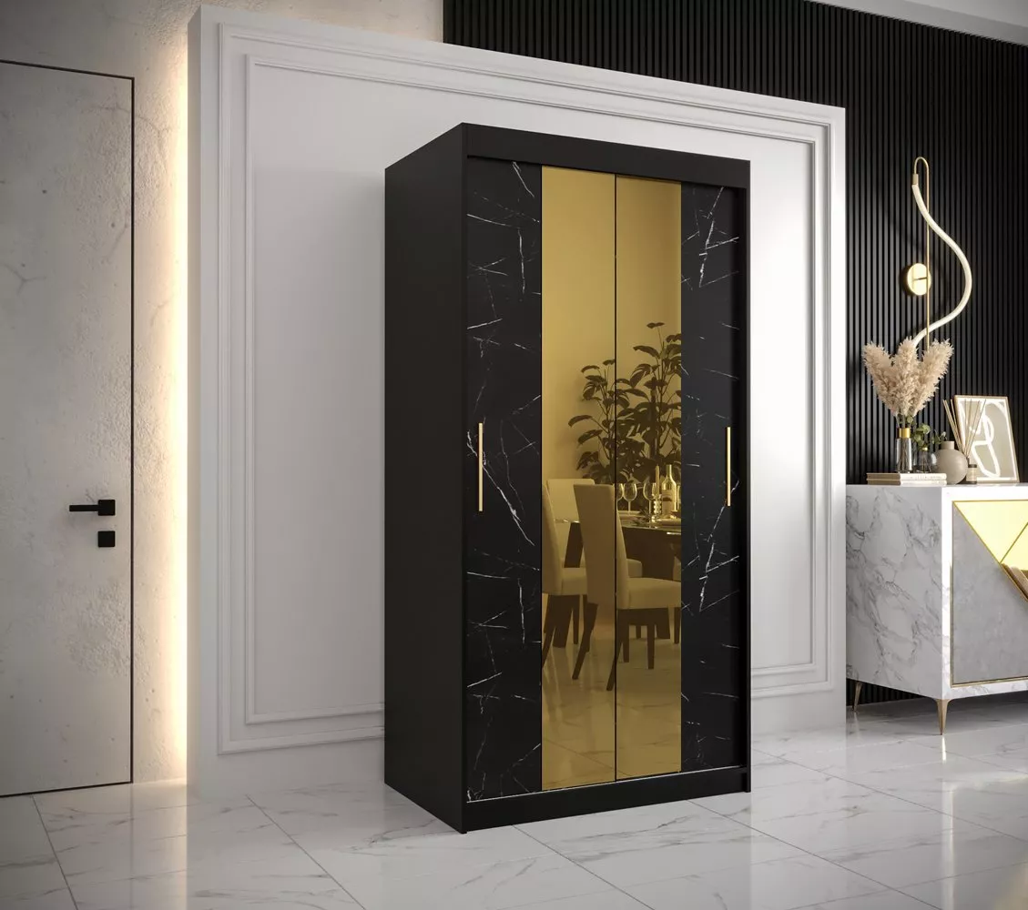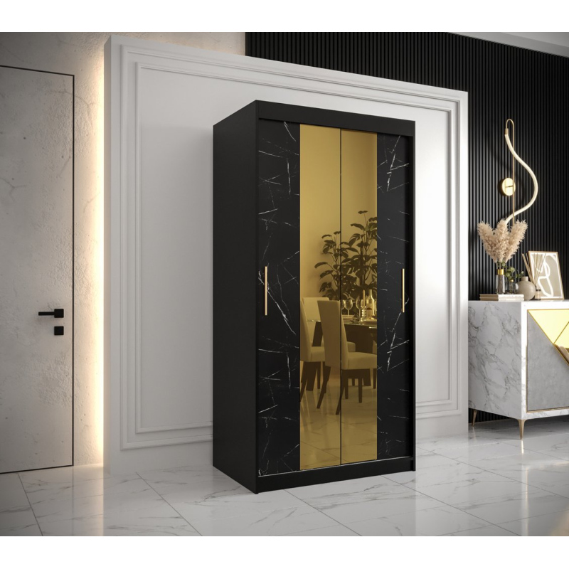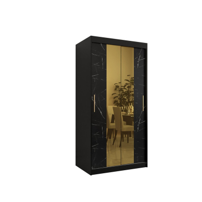 Designová šatní skříň se zlatým zrcadlem MADLA 1 - šířka 100 cm, černá