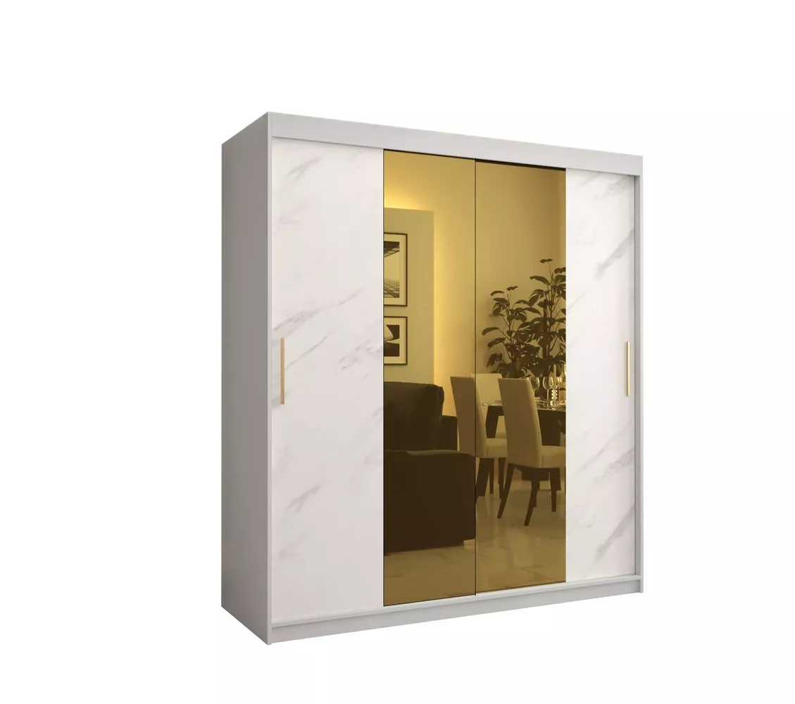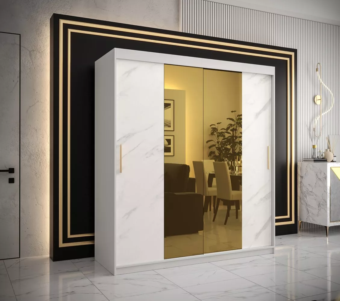 Designová šatní skříň se zlatým zrcadlem MADLA 1 - šířka 180 cm, bílá