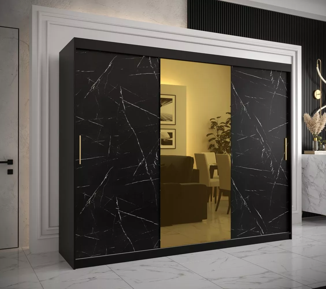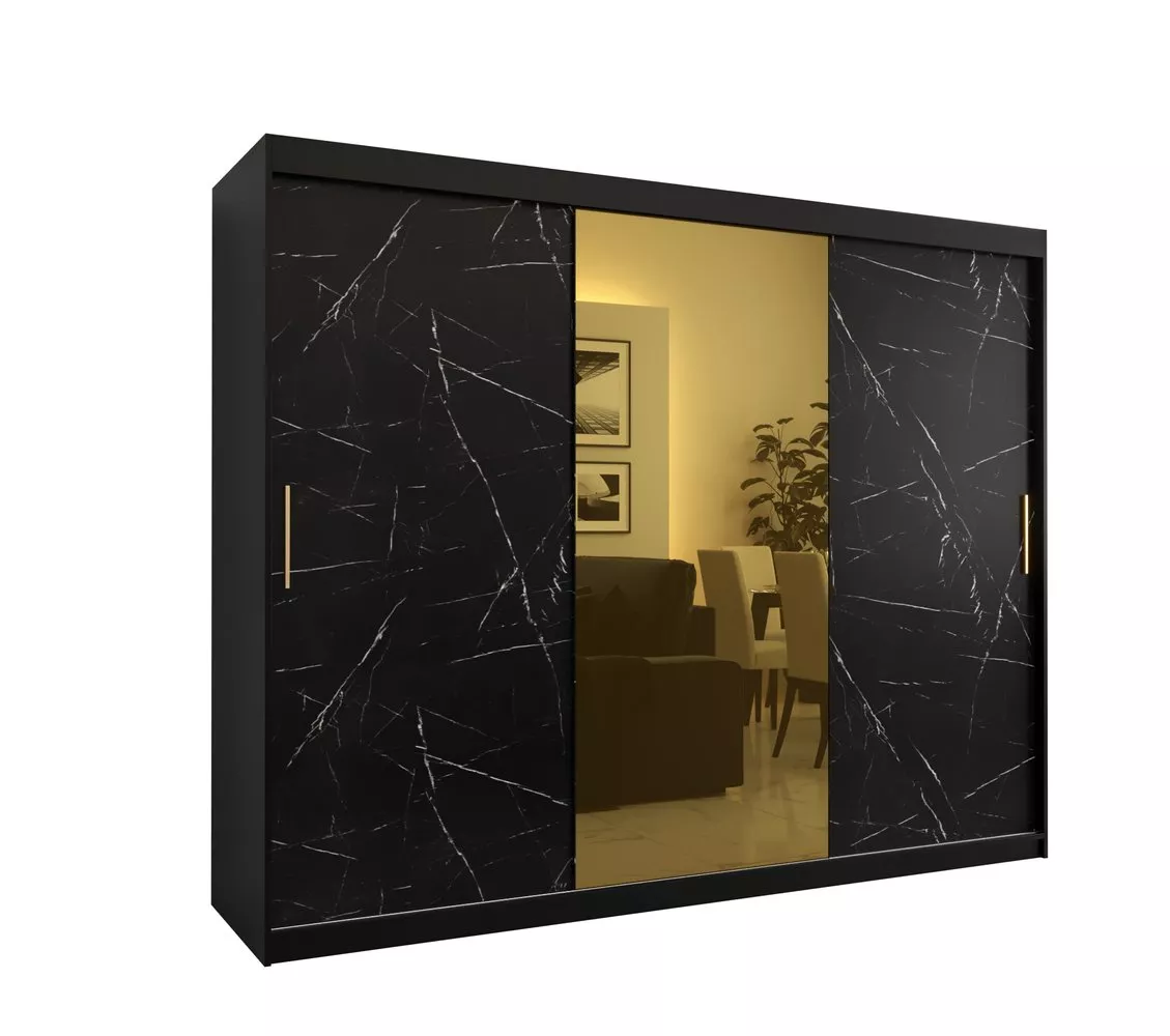 Designová šatní skříň se zlatým zrcadlem MADLA 1 - šířka 250 cm, černá