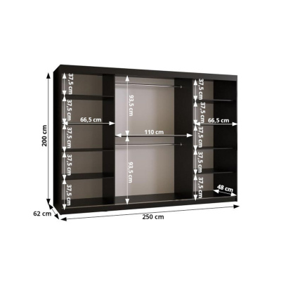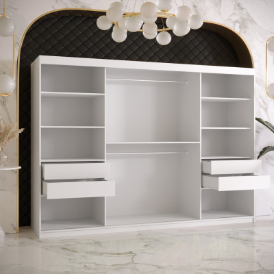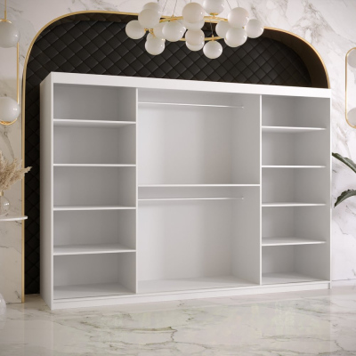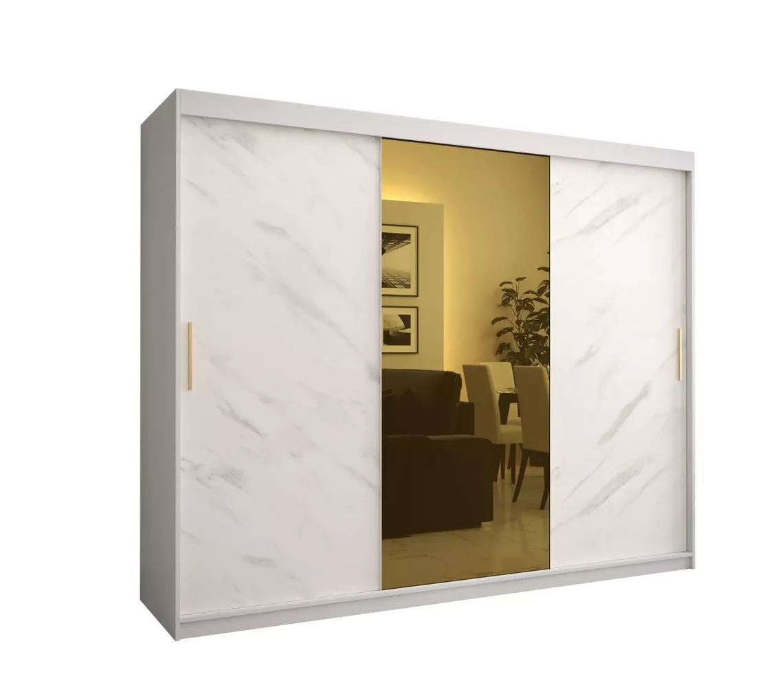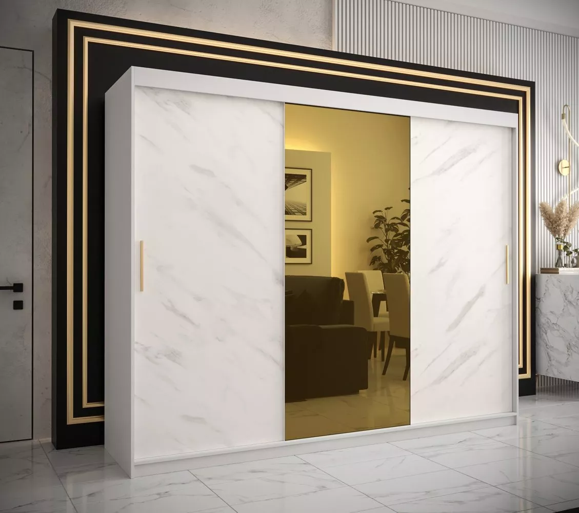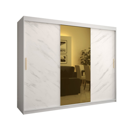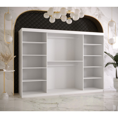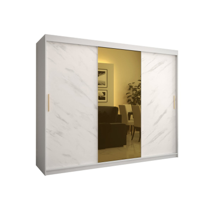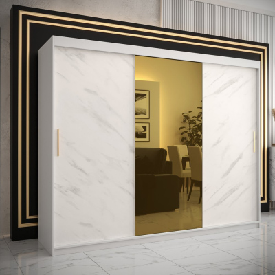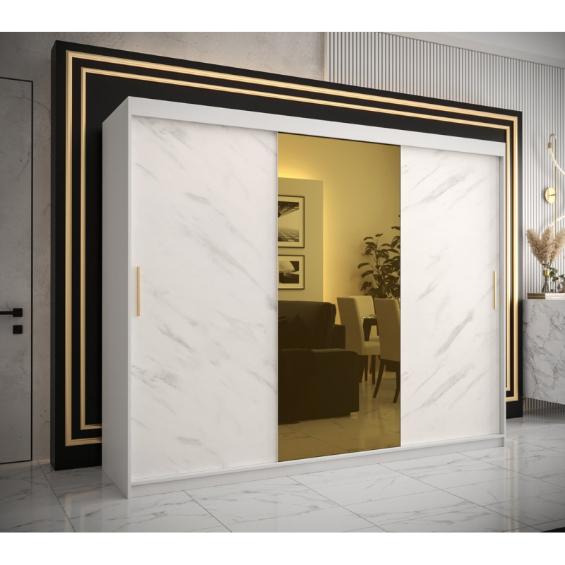 Designová šatní skříň se zlatým zrcadlem MADLA 1 - šířka 250 cm, bílá