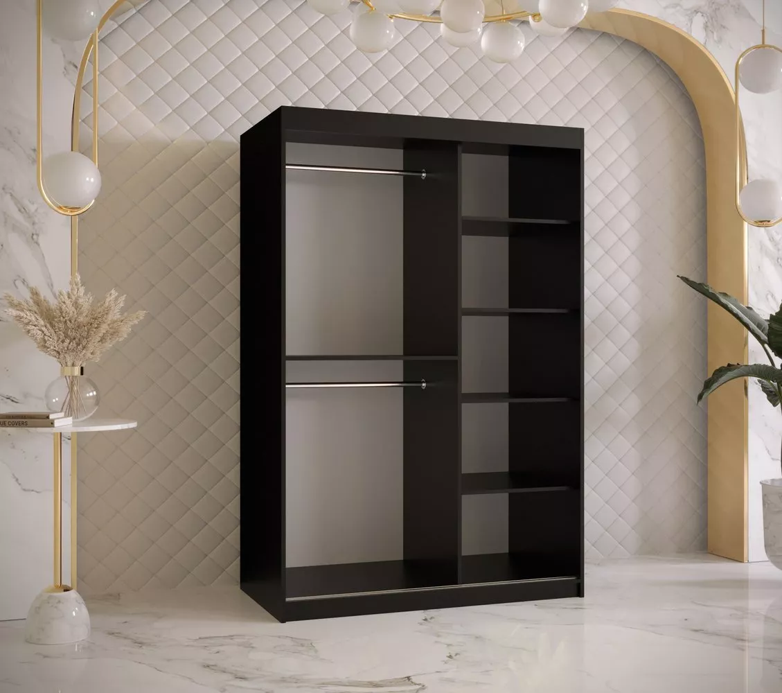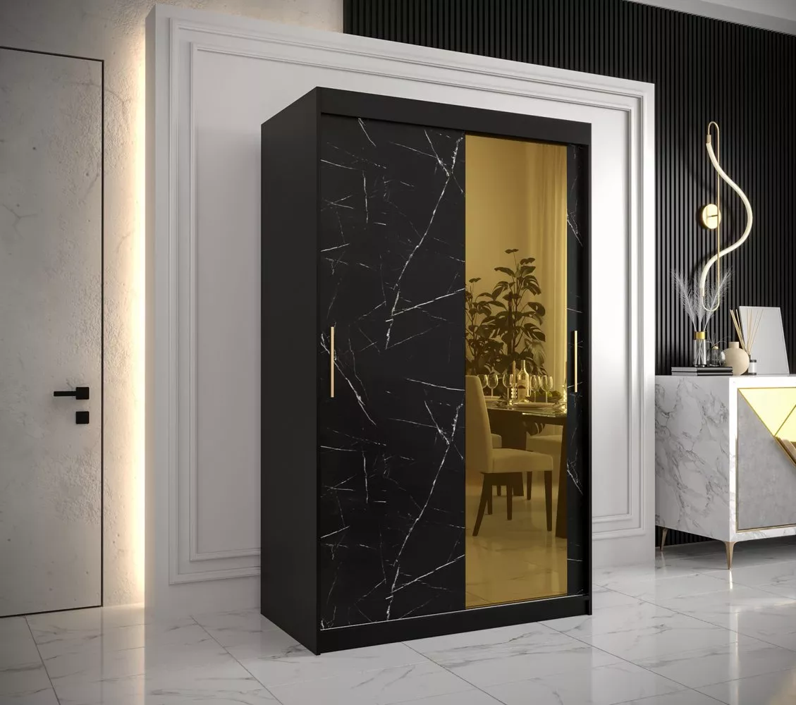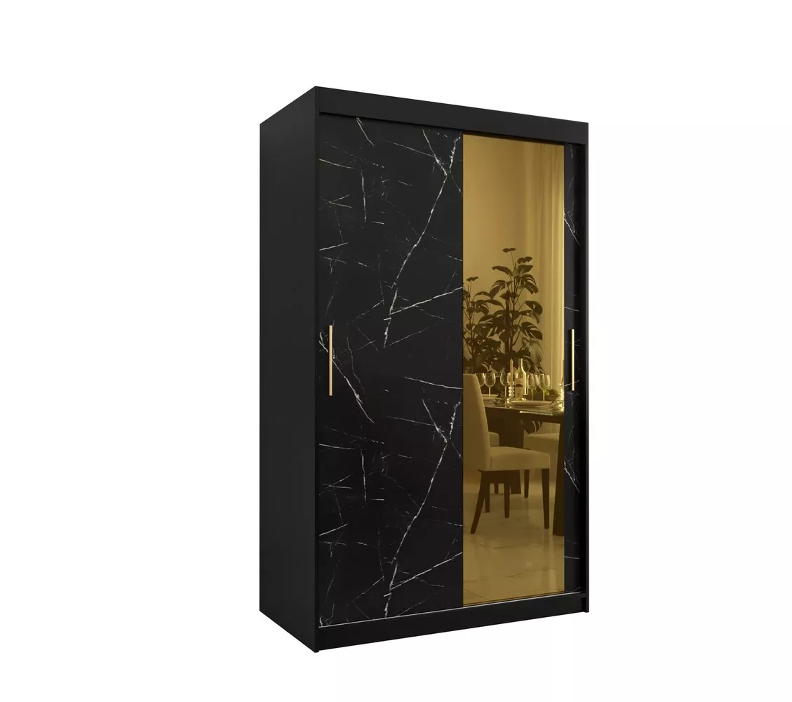 Designová šatní skříň se zlatým zrcadlem MADLA 2 - šířka 120 cm, černá