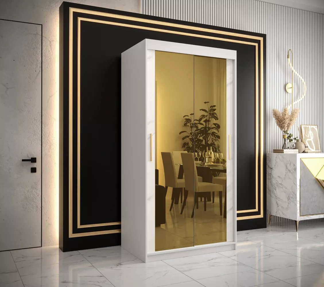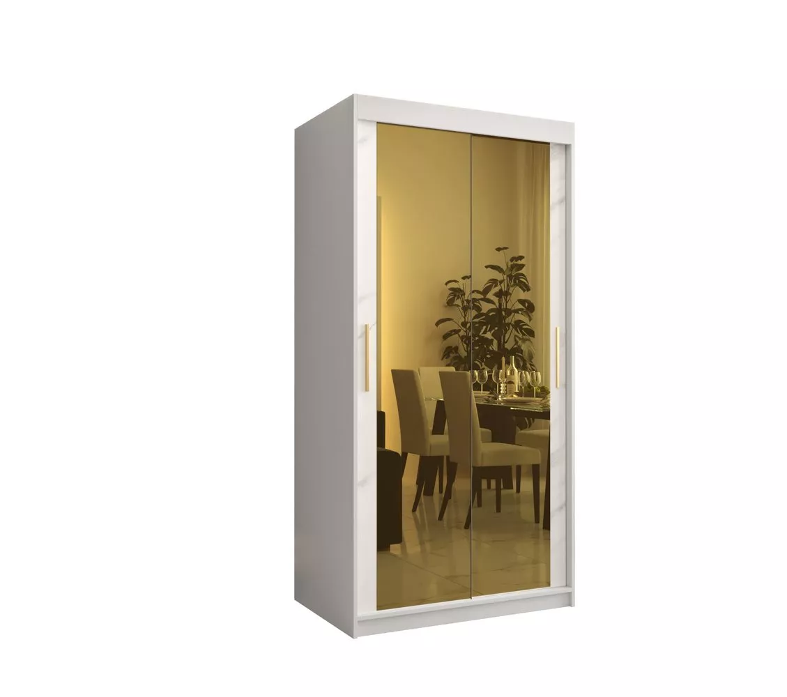 Designová šatní skříň se zlatým zrcadlem MADLA 3 - šířka 100 cm, bílá