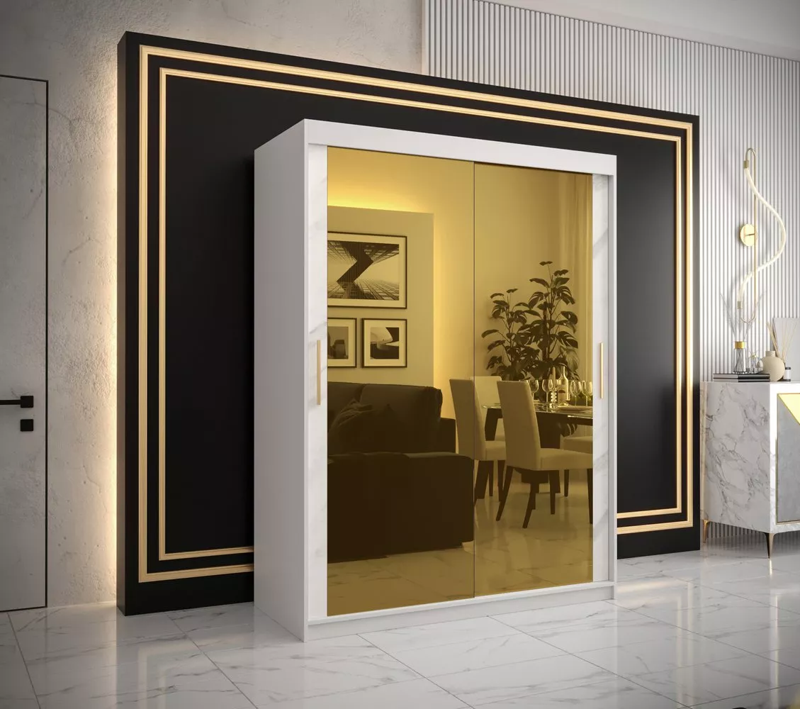 Designová šatní skříň se zlatým zrcadlem MADLA 3 - šířka 150 cm, bílá