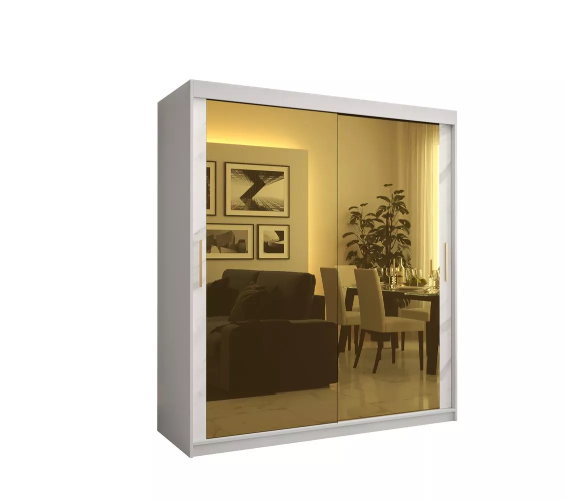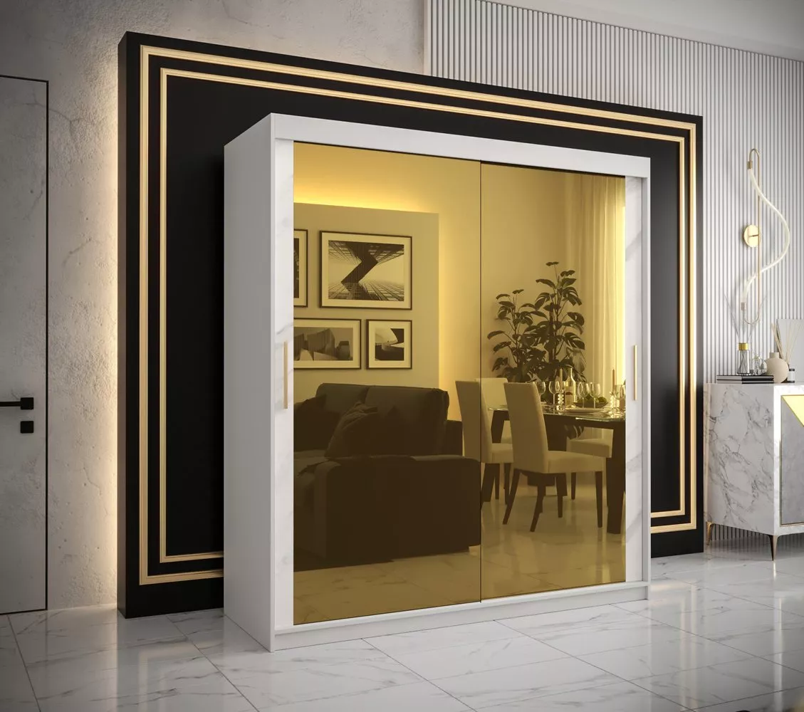 Designová šatní skříň se zlatým zrcadlem MADLA 3 - šířka 180 cm, bílá
