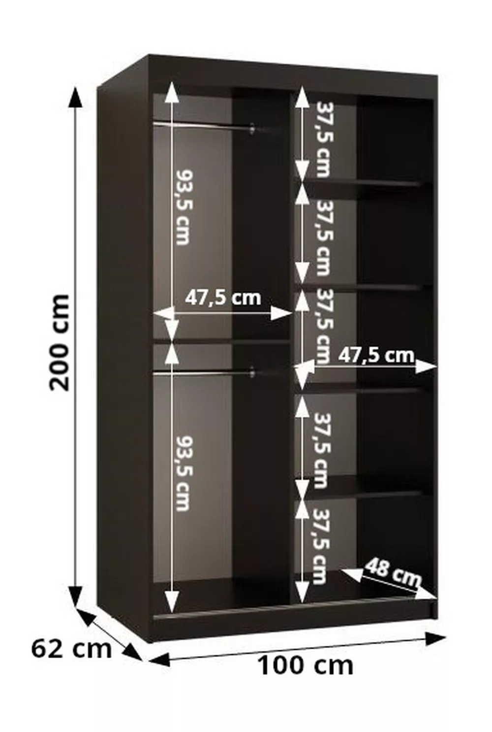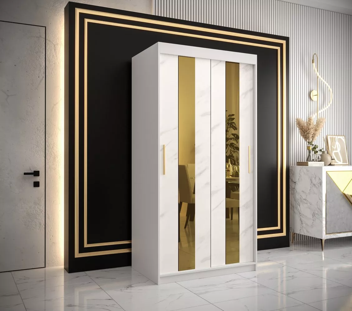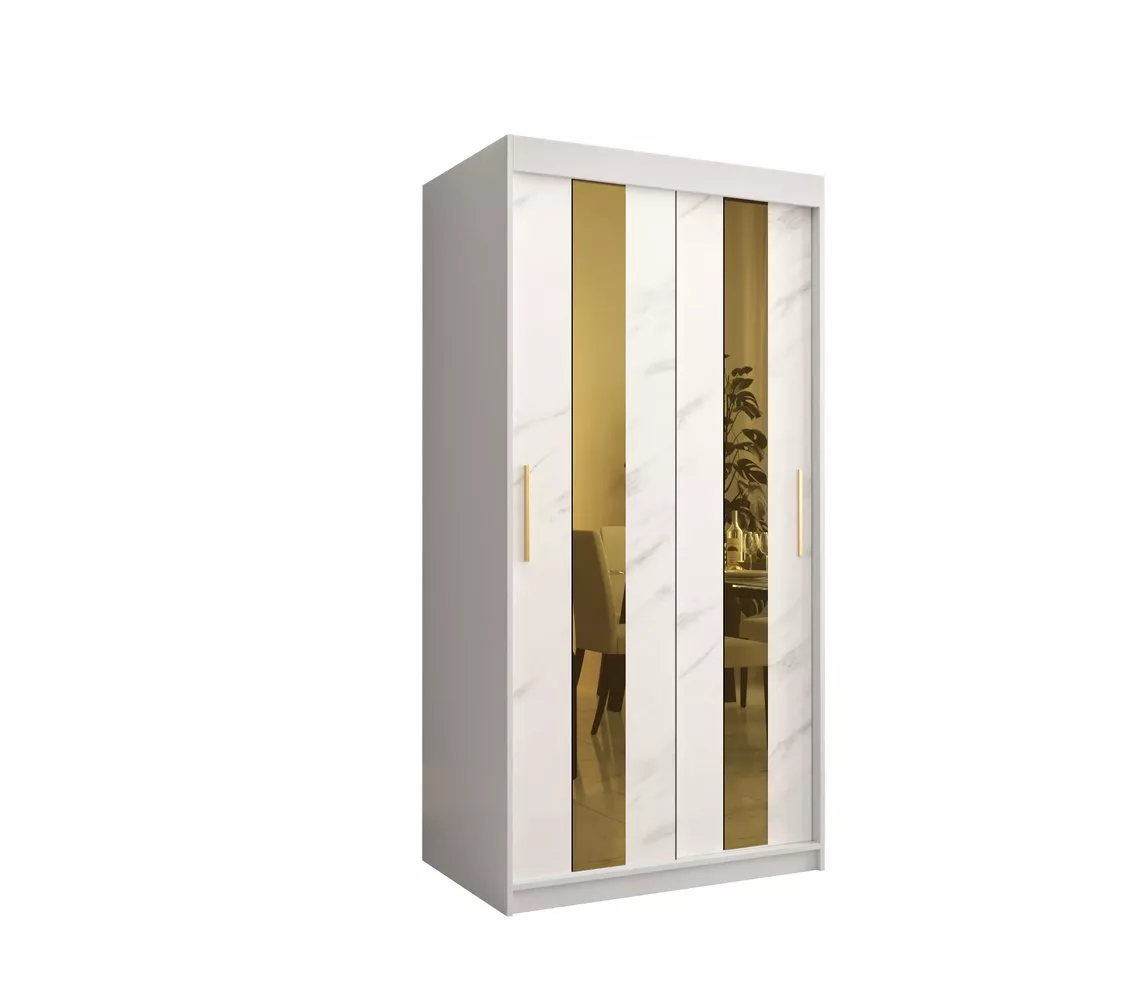 Designová šatní skříň se zlatým zrcadlem MADLA 4 - šířka 100 cm, bílá