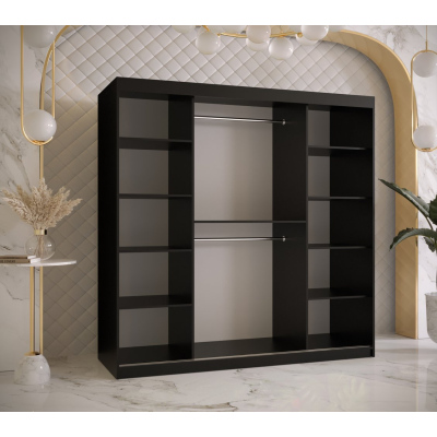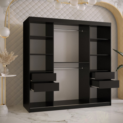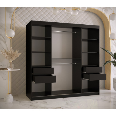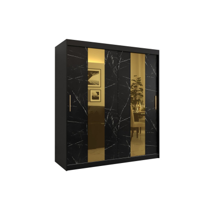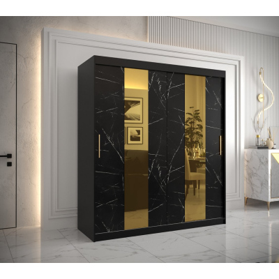 Designová šatní skříň se zlatým zrcadlem MADLA 4 - šířka 180 cm, černá