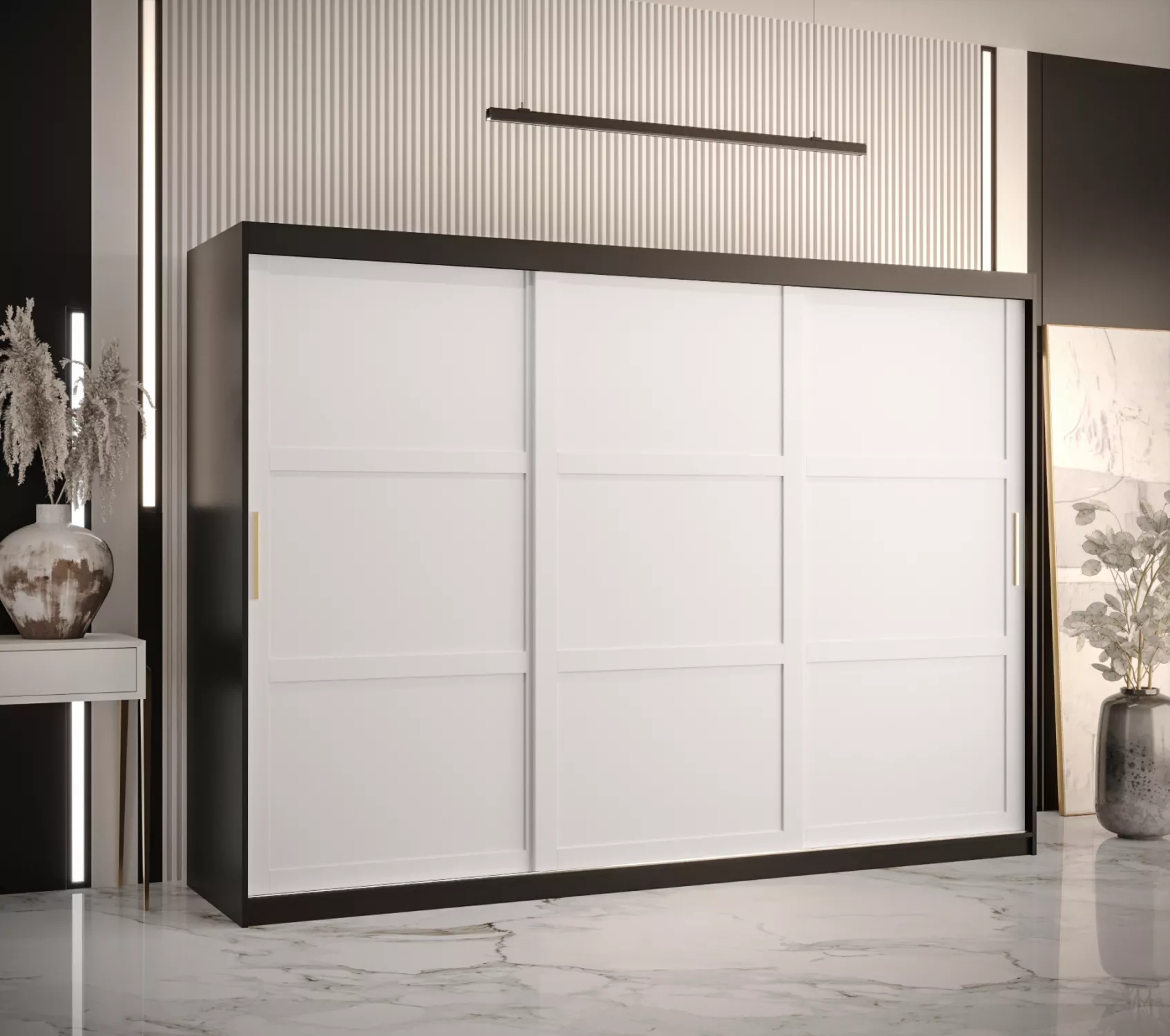 Šatní skříň RAISA 1 - šířka 250 cm, černá / bílá