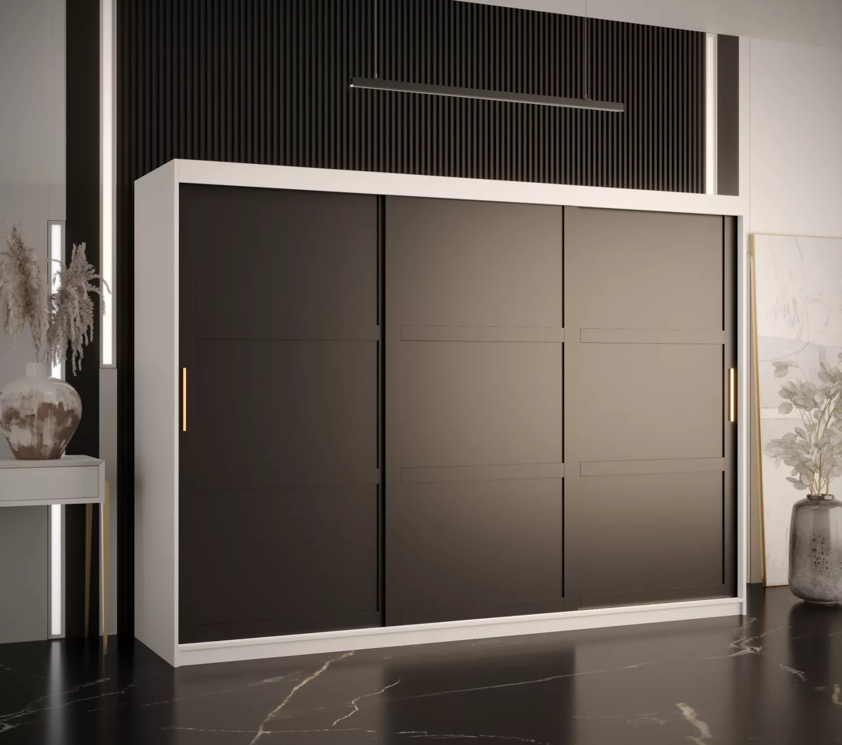 Šatní skříň RAISA 1 - šířka 250 cm, bílá / černá