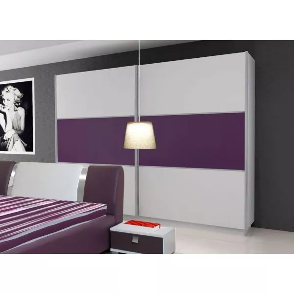Šatní skříň RYAN - šířka 200 cm, bílá / fialový lesk
