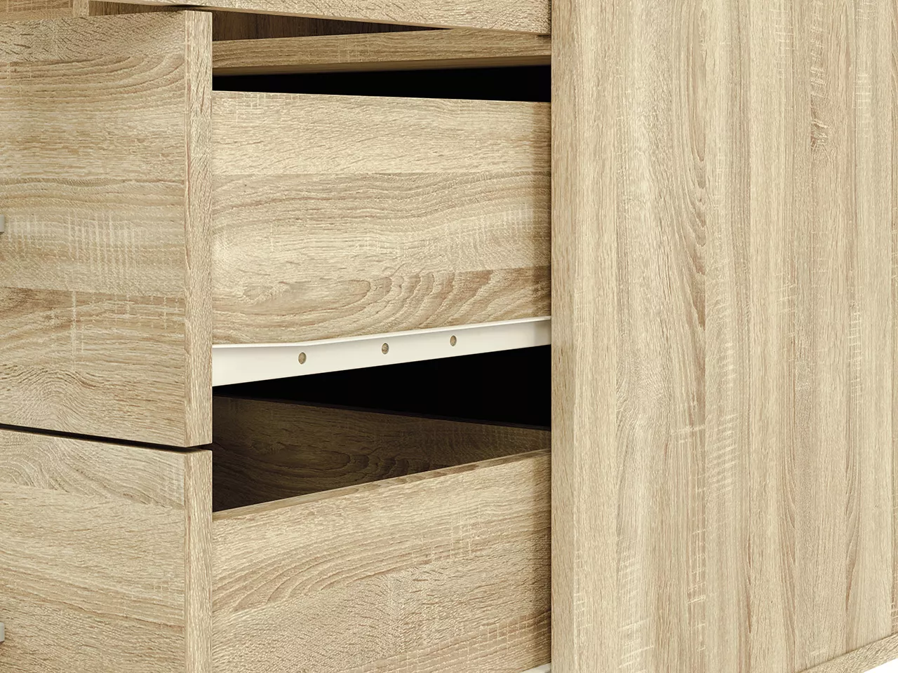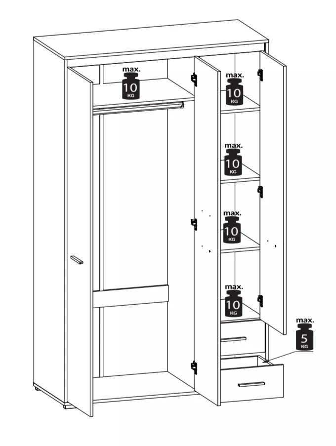Vysoká šatní skříň GVENDA se hodí do všech ložnic, studentských pokojů či šaten. Disponuje šatní tyči, 4 policemi a 2 šuplíky. Součástí jsou 3 lišty (bílá, antracit a světlá sonoma), kterými si můžete měnit vzhled vašeho pokoje bez nutnosti výměny nábytku.