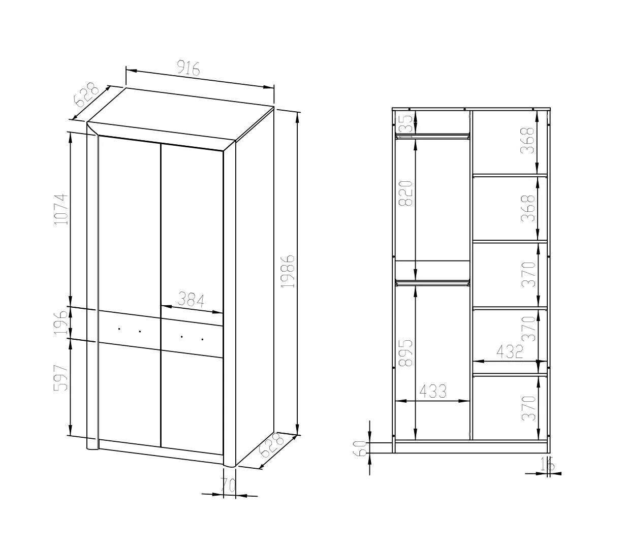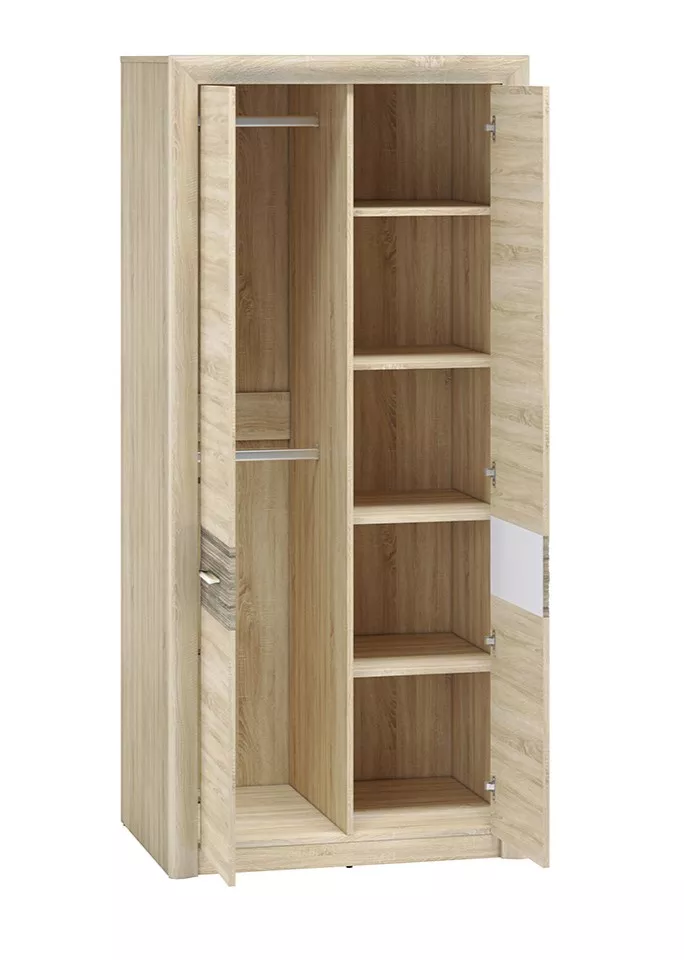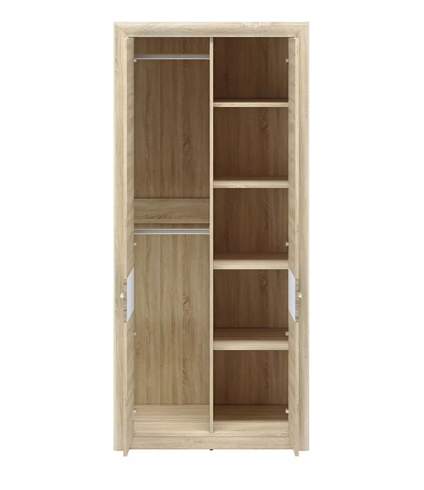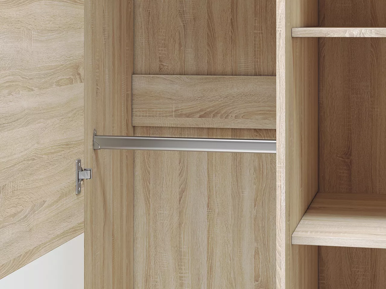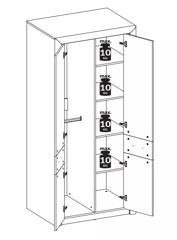 Šatní skříň KAELA se hodí do všech moderních předsíní, ložnic či šaten. Disponuje 4 policemi a 2 šatními tyčemi.