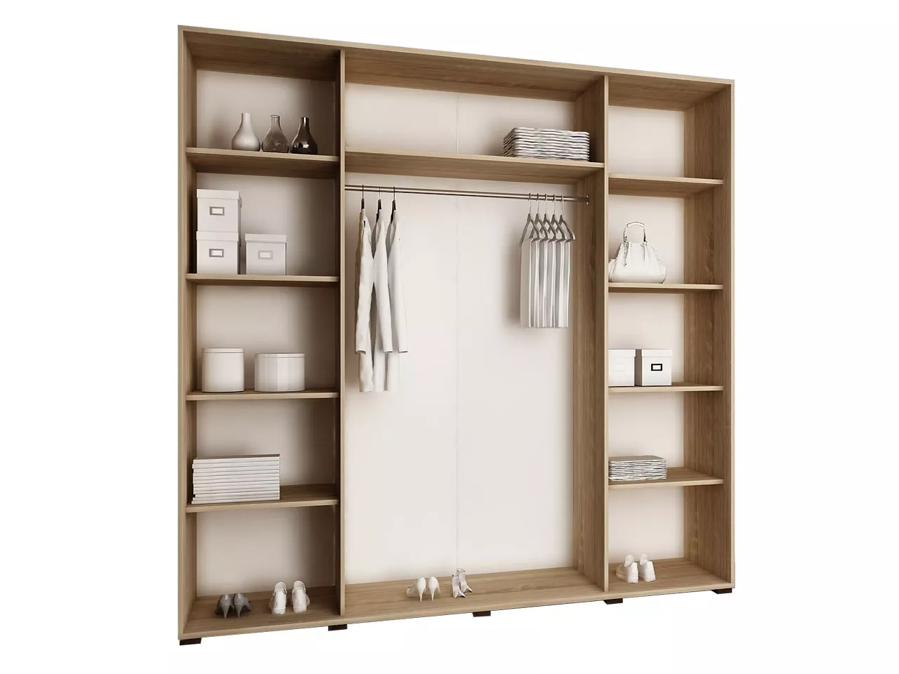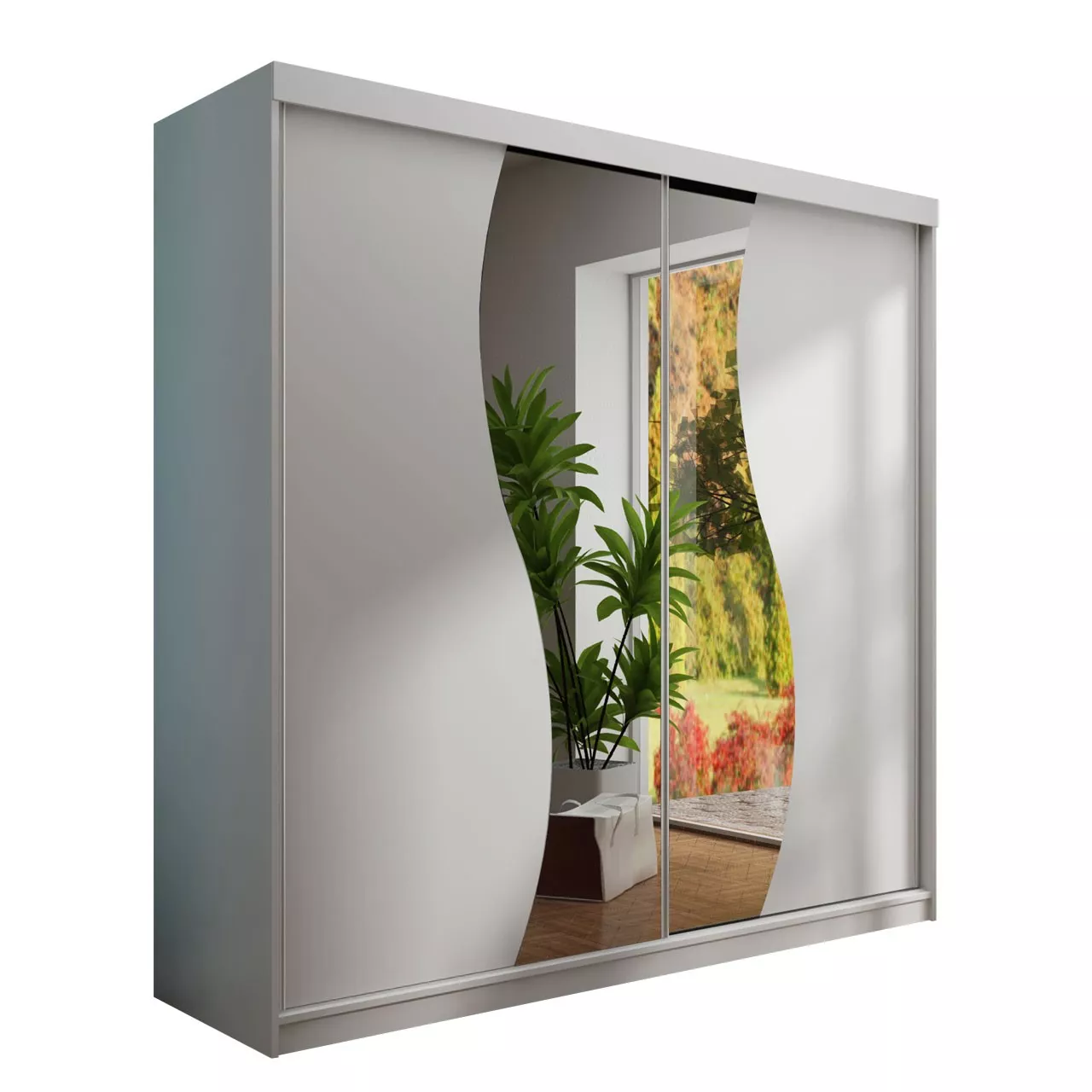 Šatní skříň ELVIRA 7 o šířce 200 cm nabízí dostatek úložného prostoru. Ve střední části skříně s posuvnými dveřmi se nachází tyč pro zavěšení oblečení. Úložné zóny umístěné po stranách jsou zase vybaveny hlubokými policemi. Skříň je navíc doplněna o praktické zrcadlo a inovativní modrým LED osvětlení.