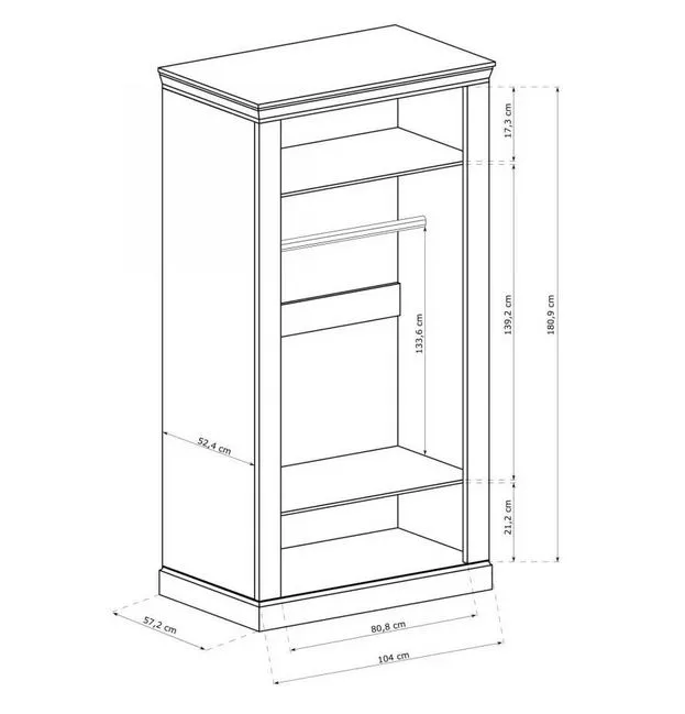 Dvoudveřová skříň AILISH jistě upoutá pozornost každého, kdo hledá funkční a stylové řešení do své ložnice. Vnitřek skříně ukrývá tyč na zavěšení oblečení a 2 hluboké police.