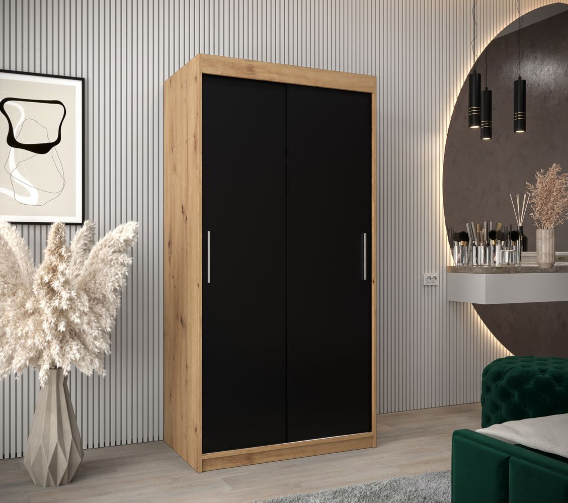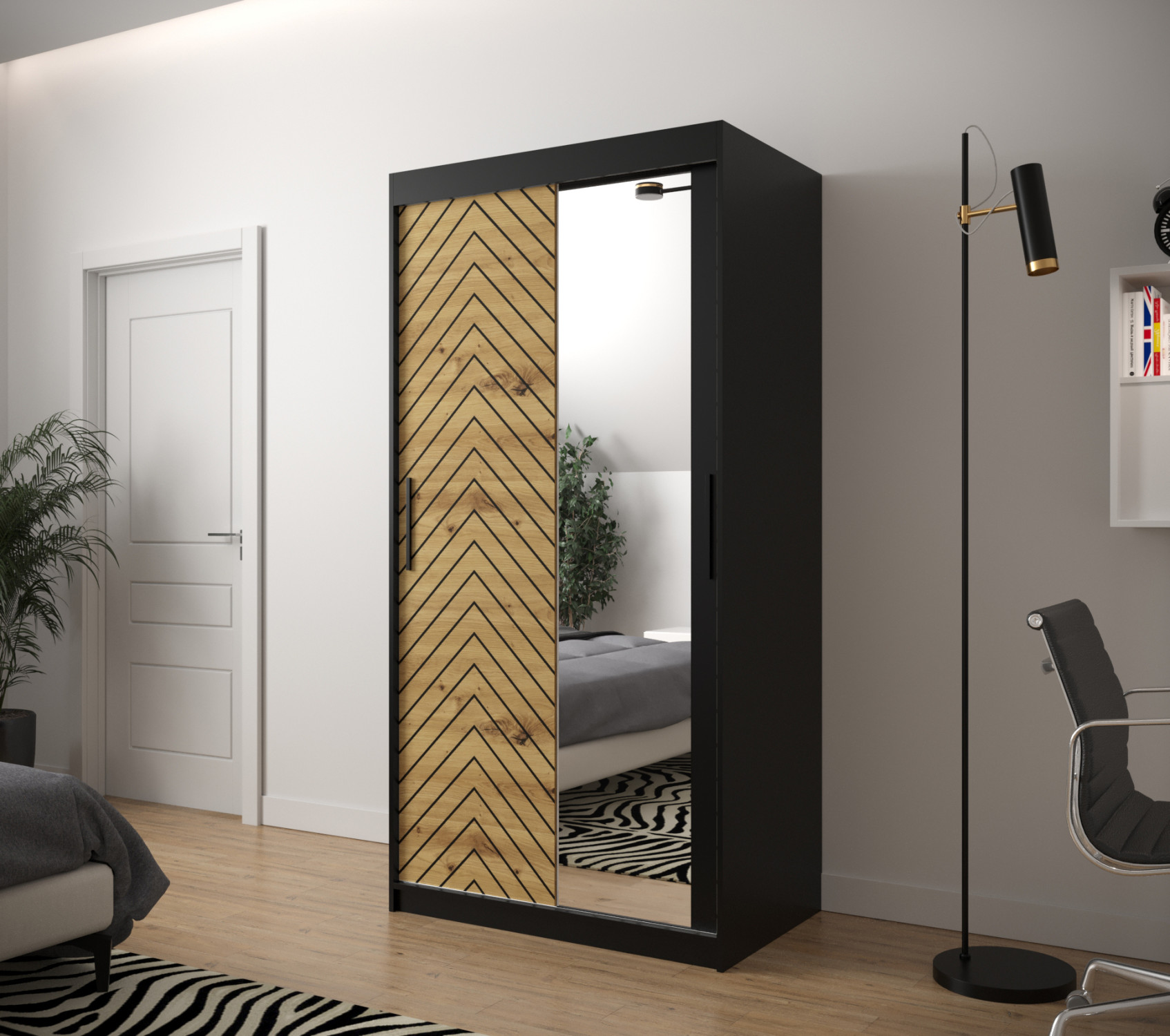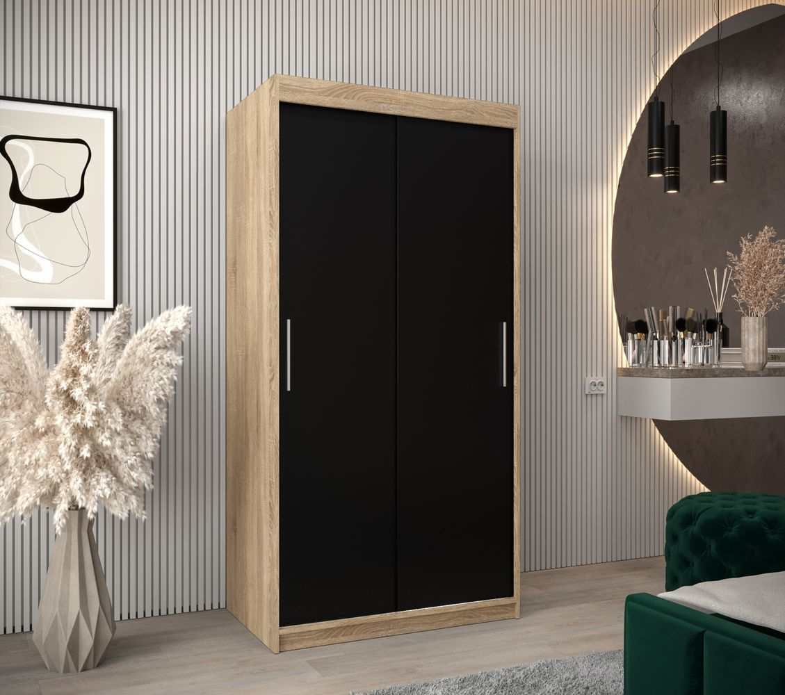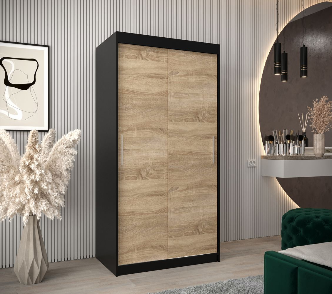 Skříň s posuvnými dveřmi MADELEIN 2 - šířka 100 cm, černá / ořech