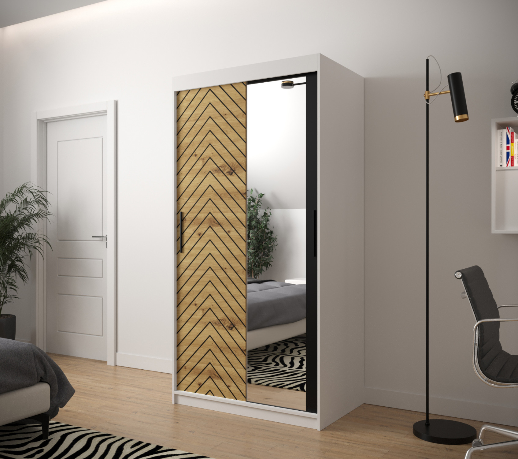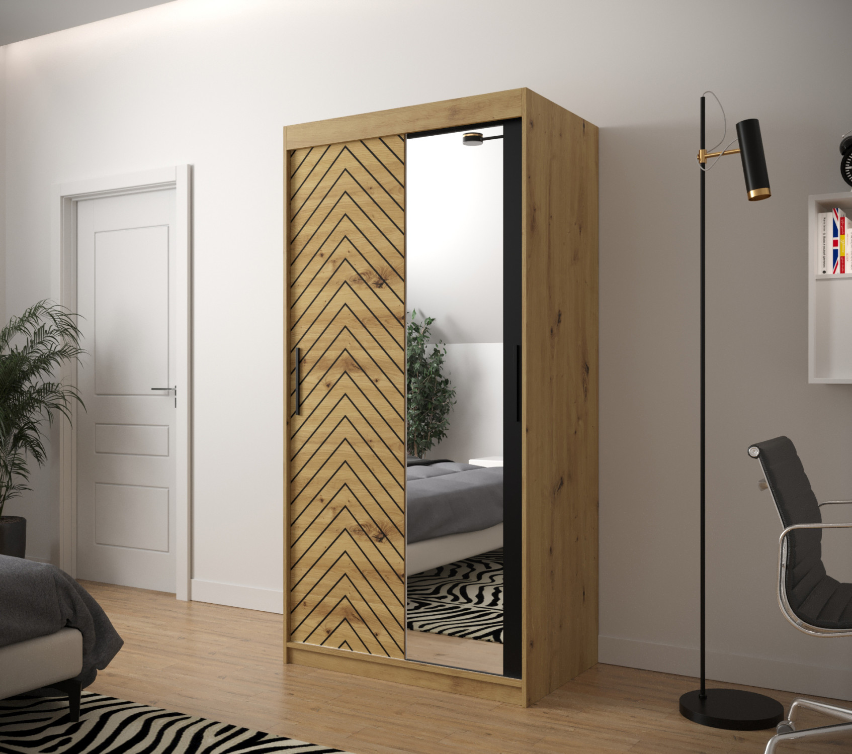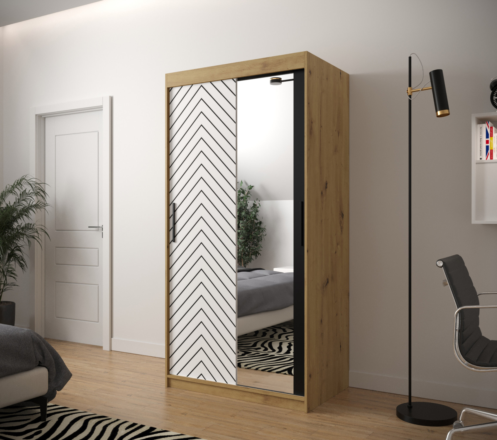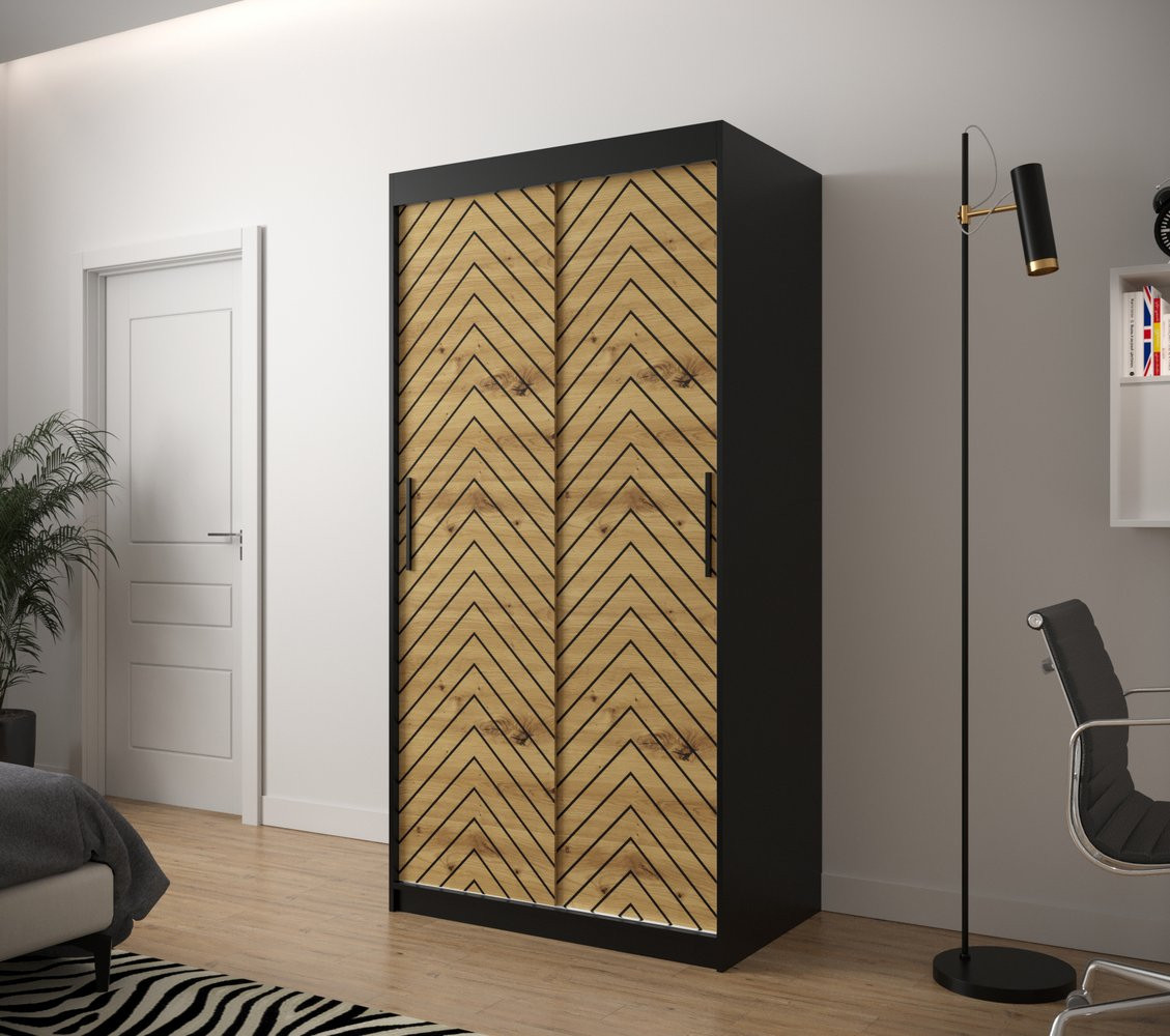 Skříň s posuvnými dveřmi MADELEIN 2 - šířka 100 cm, černá / ořech