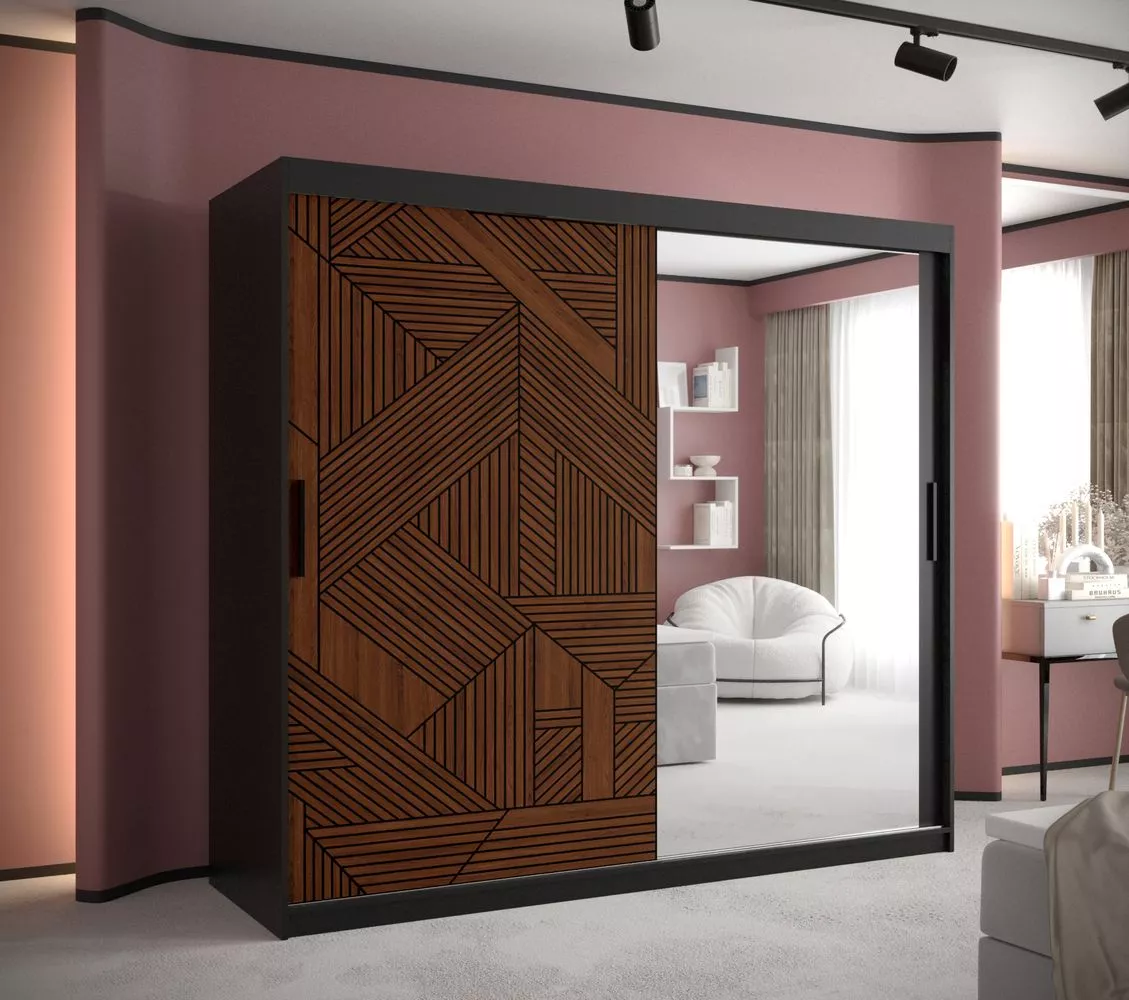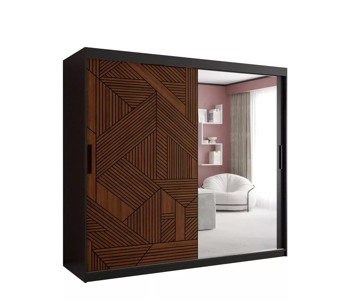Skříň se zrcadlem MADELEIN 3 - šířka 200 cm, černá + ořech